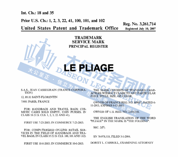 原告:S.A.S. Jean Cassegrain and Longchamp USA, Inc.