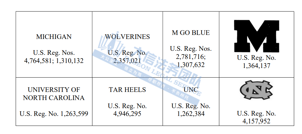 此案为商标维权案件,共涉及超多商标,如CLEMSON TIGERS、KU、UCLA、MICHIGAN等。两天发5案,跨境买家千万不可大意,尽快检索自家产品,避免造成侵权损失!