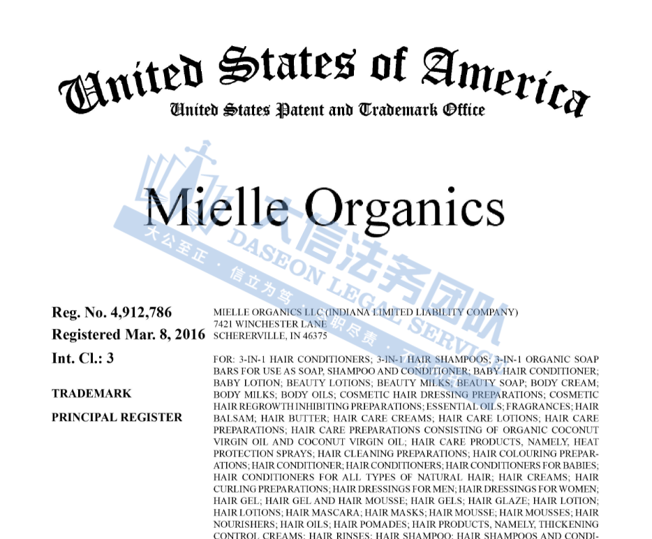 此案为商标维权案件,共涉及3个图文商标,维权关键词:Mielle Organics 、Mielle;跨境卖家尽快检索下架,避免侵权造成TRO被冻结风险!