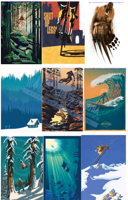 原告是来自加拿大的平面设计师、插画家、动画师,灵感主要来源于复古旅行海报,尤其是20世纪的复古海报外观和感觉,他喜欢将这种复古风格与现代元素相结合,形成自己独特的艺术风格。其作品结合了数字和传统媒介,将这两种风格融合在一起,创造出独具特色的艺术作品。