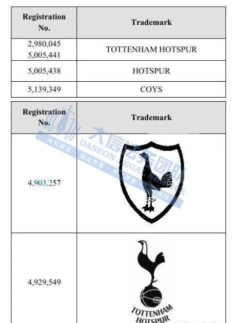 此案为商标维权,涉及TOTTENHAM HOTSPUR等商标,未经授权不得擅自使用,相关跨境卖家尽快检索自家产品,对照下架,避免造成侵权损失!