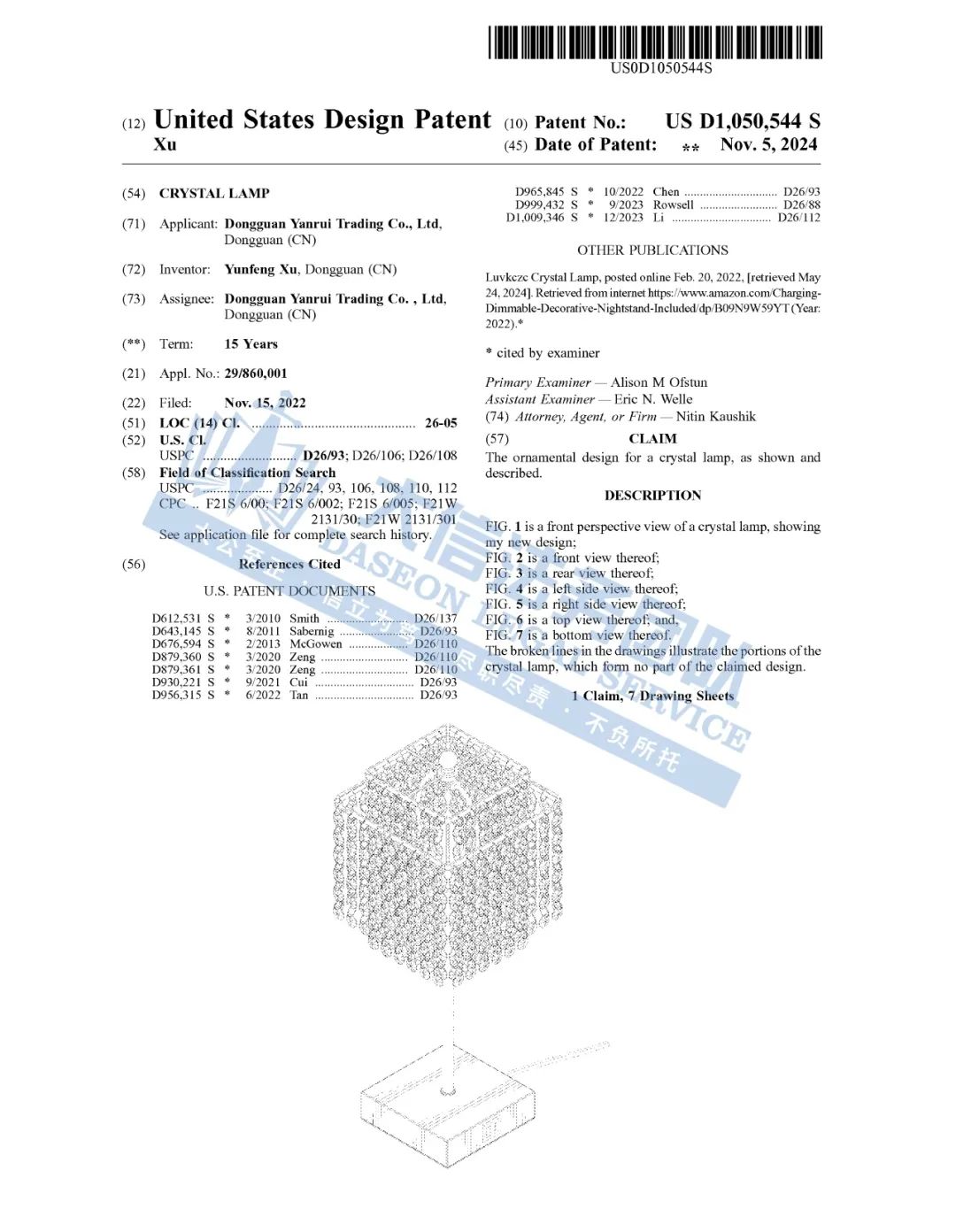原告是国人卖家,来自中国东莞,专注于室内照明灯具的设计与销售。公司以创新为核心,通过前沿的触摸调节技术,让用户仅需轻触底座即可调节光线明暗,提升使用便捷性。Yanrui 台灯还配备双 USB 充电端口,为手机、平板等设备提供快速充电,展现科技与生活的完美结合。产品既适合家庭场景,也适用于办公环境,满足多样化的照明需求。