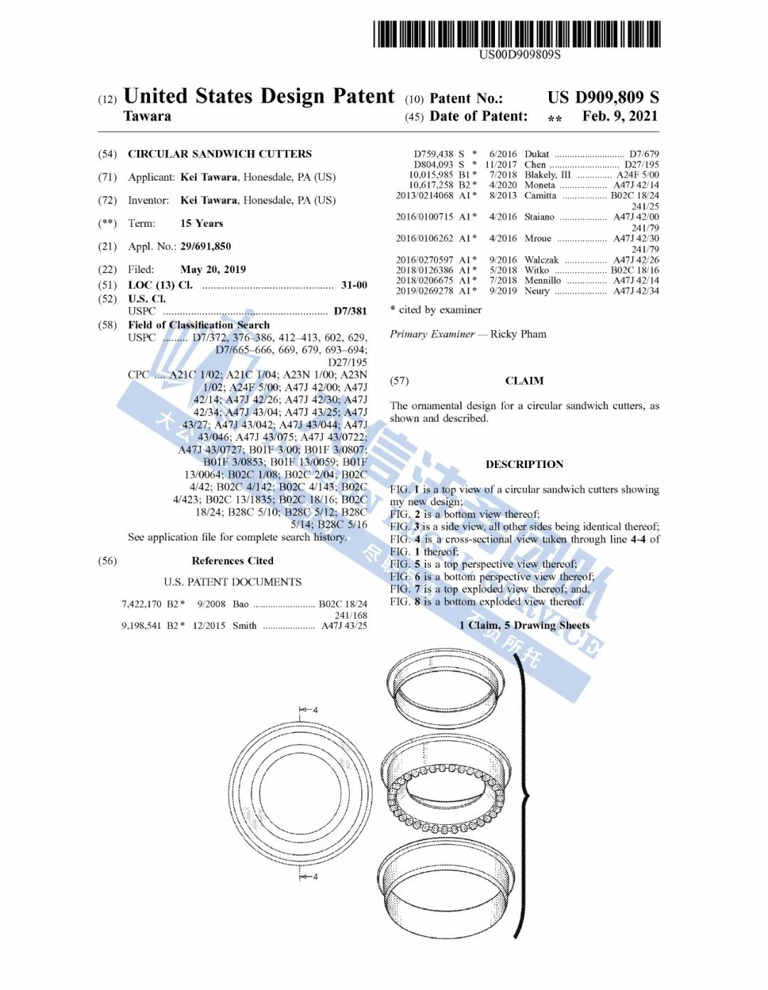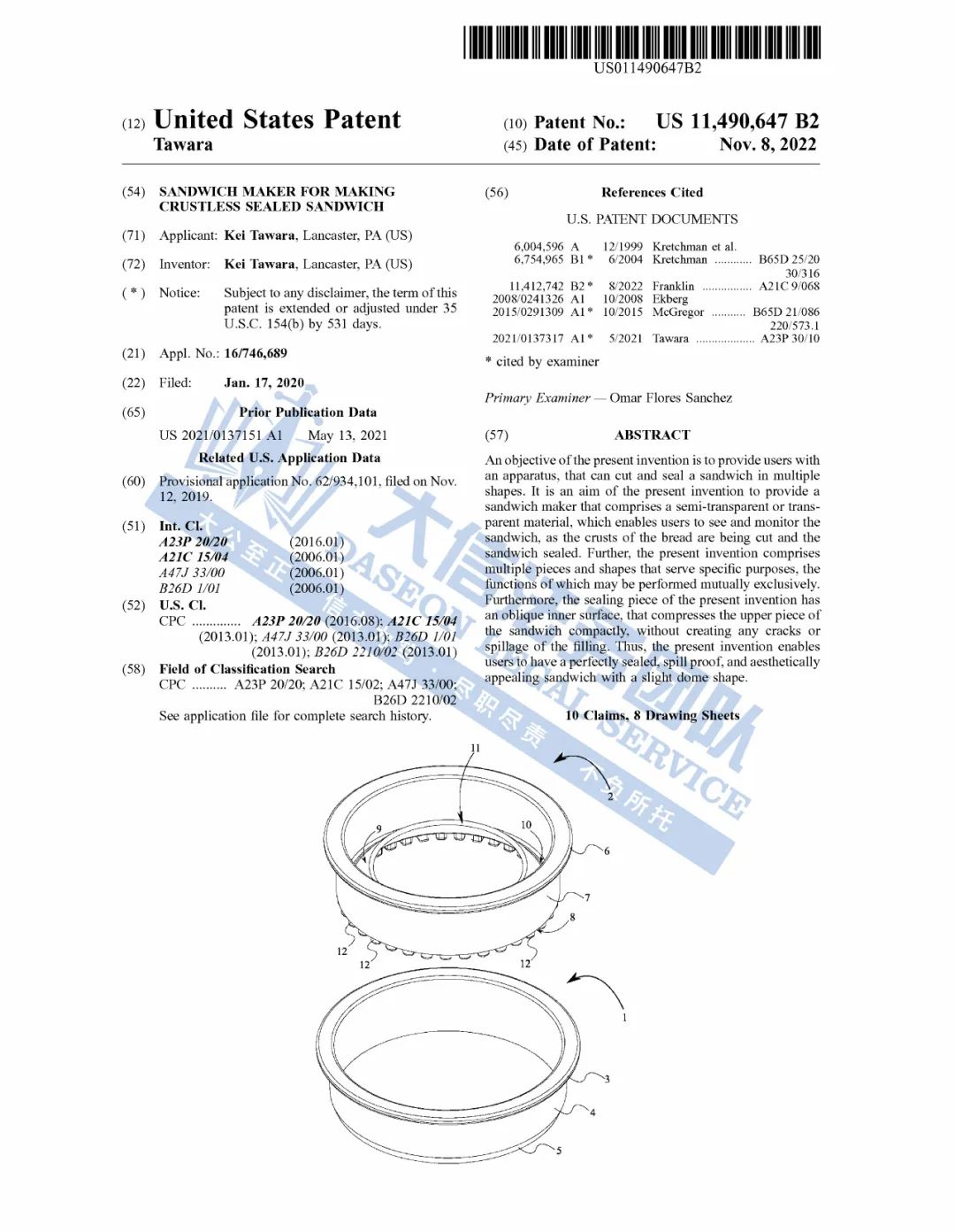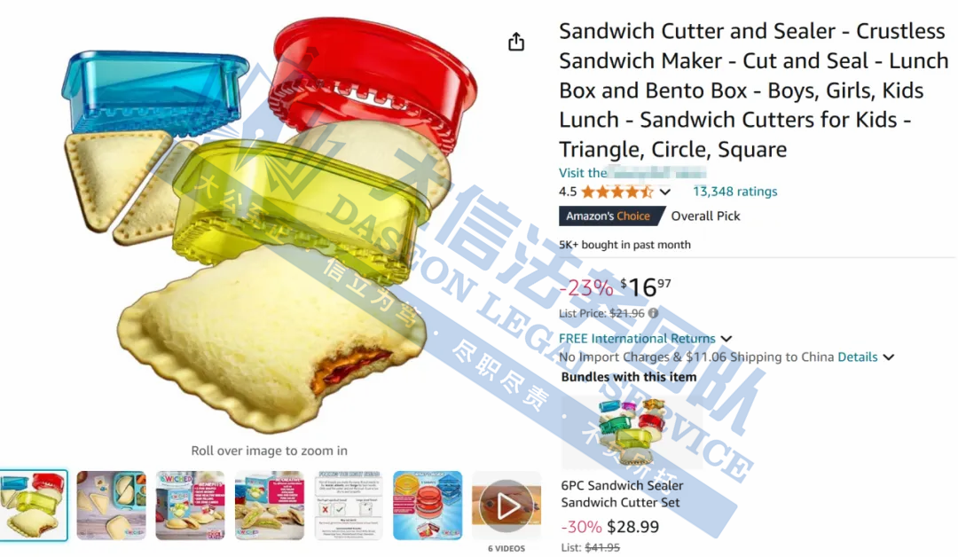 原告是宾夕法尼亚州的公司,创始人 Kei Tawara ,专注于开发革命性的三明治封口器,以无毒材料制造,此次维权产品采用半透明材料制成,操作简便,使用户在封口和切割三明治时能够清晰看到内部食材。只需将三明治放入后轻压,即可切割和封口,避免食材溢出,除此之外,还具有多种趣味形状,增加了用餐乐趣,特别适合为儿童准备餐点,提升进食的趣味性与效率。
