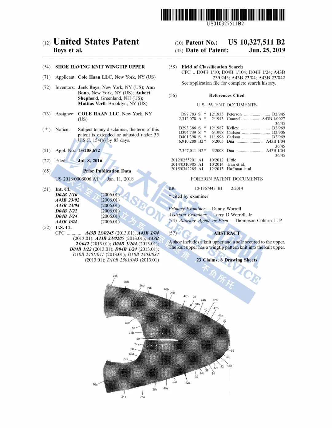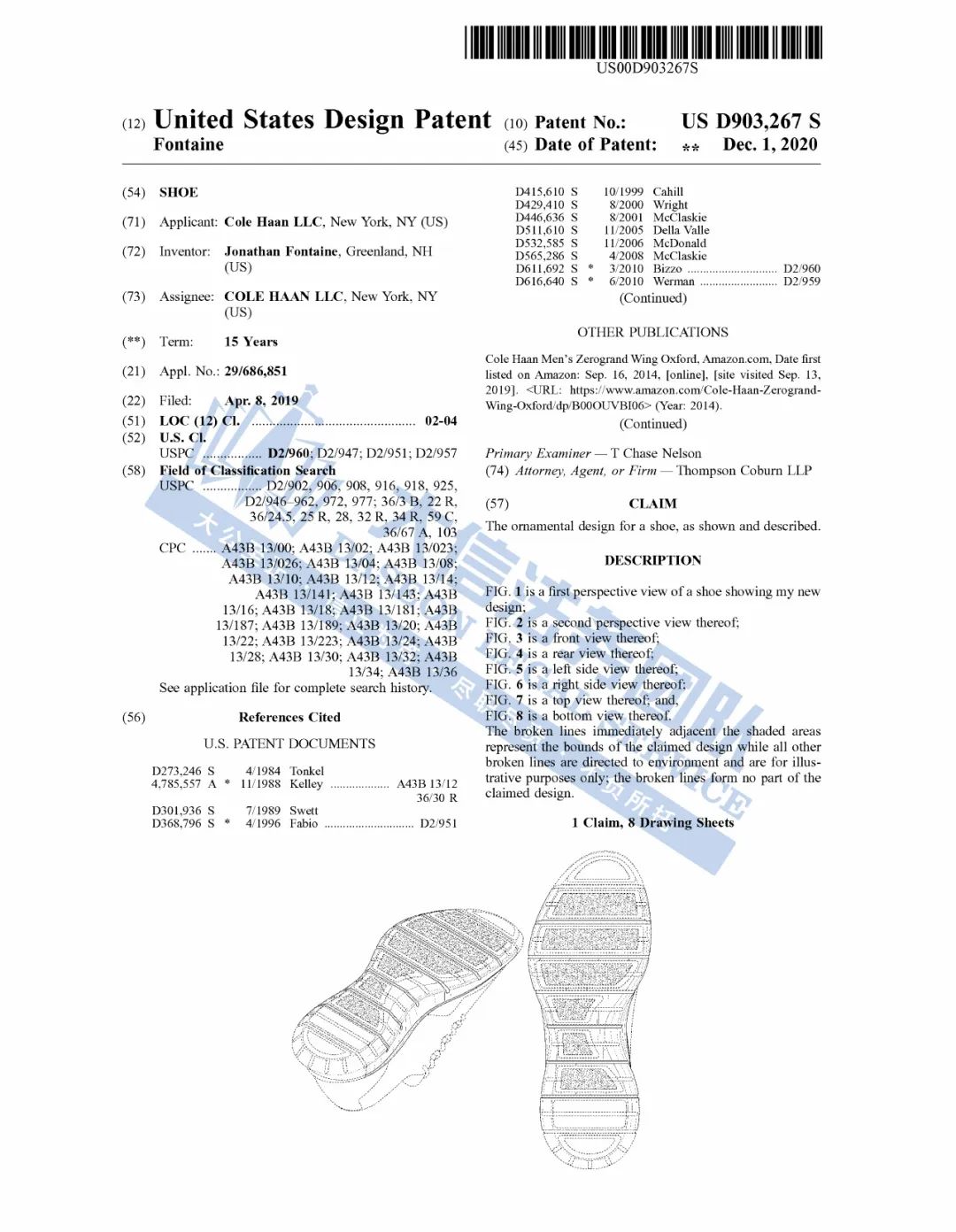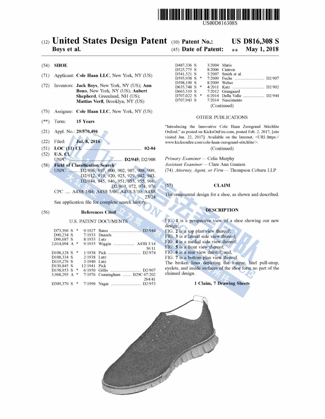 原告于1928年在美国伊利诺斯州芝加哥市由Trafton Cole和Eddie Haan共同创立。Cole Haan产品以高品质和创新技术为特点,融合了工艺及创新技术,以时尚手法演绎经典设计。如其经典鞋履轮廓如Oxford、Wingtip及帆船鞋等,通过多种色调、材质及处理手法重新塑造,展现出全新的时尚魅力。作为一个享誉全球的高端鞋履品牌,Cole Haan生产的牛津鞋一直是备受消费者好评的爆款产品。