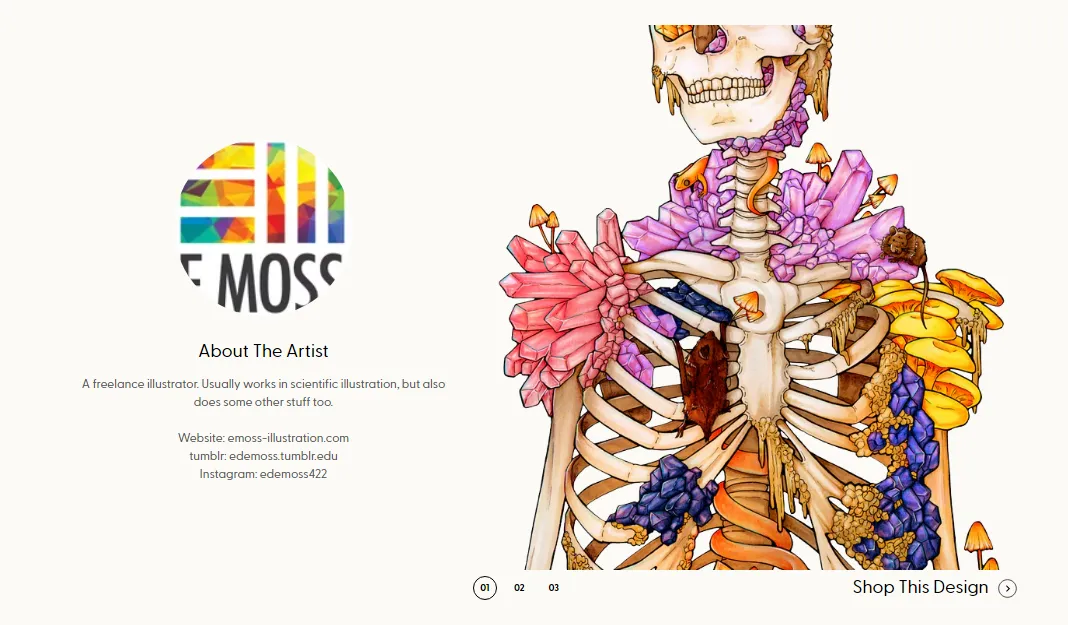 原告来自美国伊利诺伊州芝加哥的自由插画家,专注于医学和自然主题的插图创作。作为一名专业艺术家,她的作品极具特色,将自然图像与医学插图巧妙融合,这种独特的结合方式创造出了非常引人注目的艺术作品。无论是在科学插画的专业领域,还是在融合多种元素进行艺术创作方面,Elizabeth Moss都展现出了非凡的才华,在艺术领域具有她独特的艺术风格。