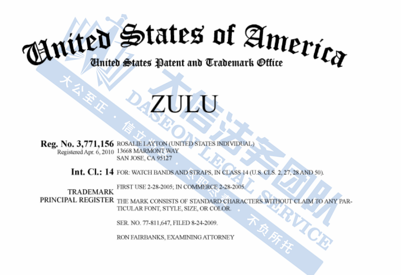 ZULU表带商标