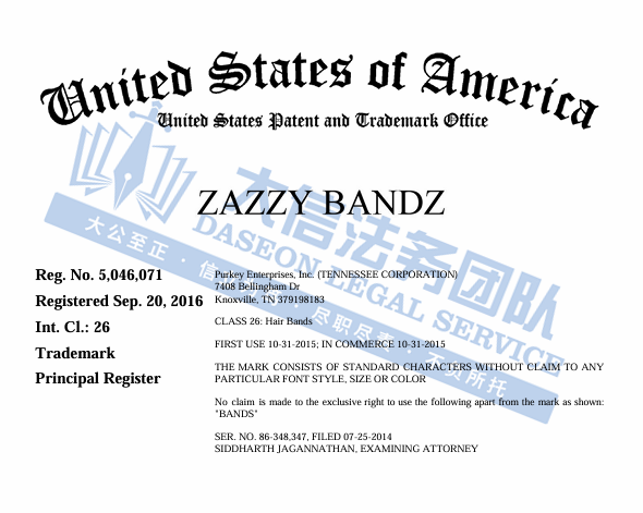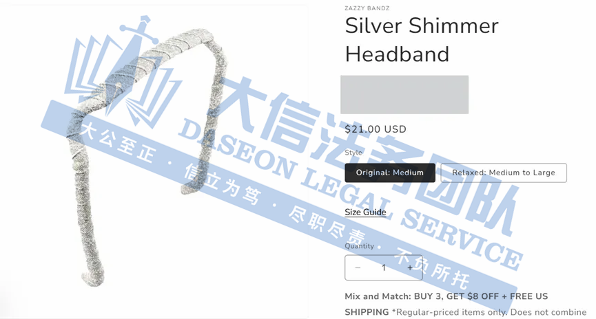 原告是一家美国公司,旗下的Zazzy Bandz是由医学博士 Janet Purkey 设计的,是一款像太阳镜一样的发带。公司致力于为客户提供高品质、时尚且舒适的发带选择,适合各种头发类型和发质。这款发带的特点是其独特的弯曲设计,从而让发带更加贴合头部,避免了传统发带可能带来的不适感。无论是日常生活、运动或者派对活动,都可以可以满足不同人群的需求。