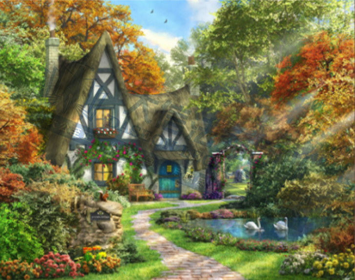 原告是来自英国的艺术家,现居于英国白金汉郡,他的创作灵感来自于从周围环境中,描绘出一幅幅田园诗般的浪漫场景,以细腻的笔触和对细节的关注,展现了英国乡村的梦幻别墅场景,深受全球艺术爱好者的喜爱。此外,他的作品被广泛应用于拼图等产品中,进一步扩大了他的艺术影响力,使更多人能够欣赏到他对田园风光的独特诠释。