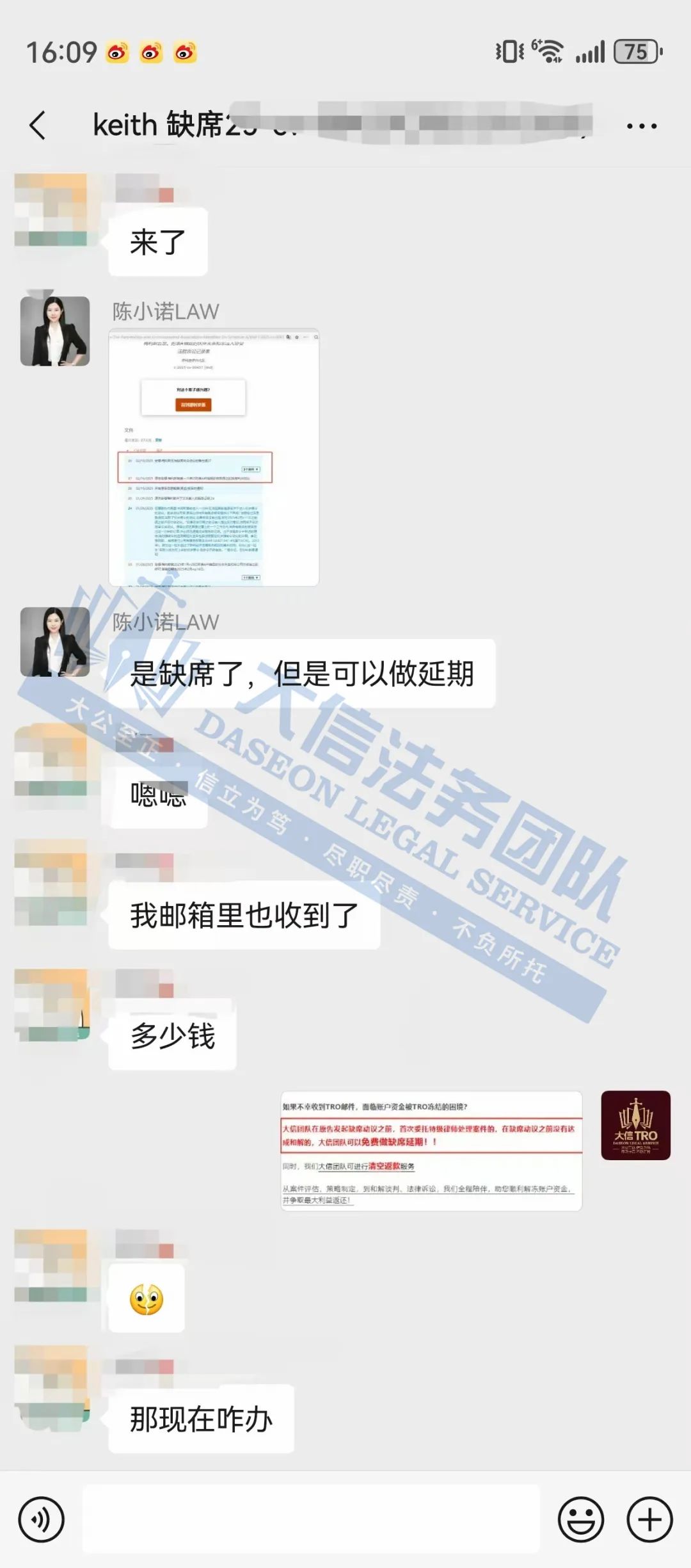 大信团队在原告发起缺席动议之前,首次委托特级律师处理案件的,在缺席动议之前没有达成和解的,大信团队可以免费做缺席延期!!
