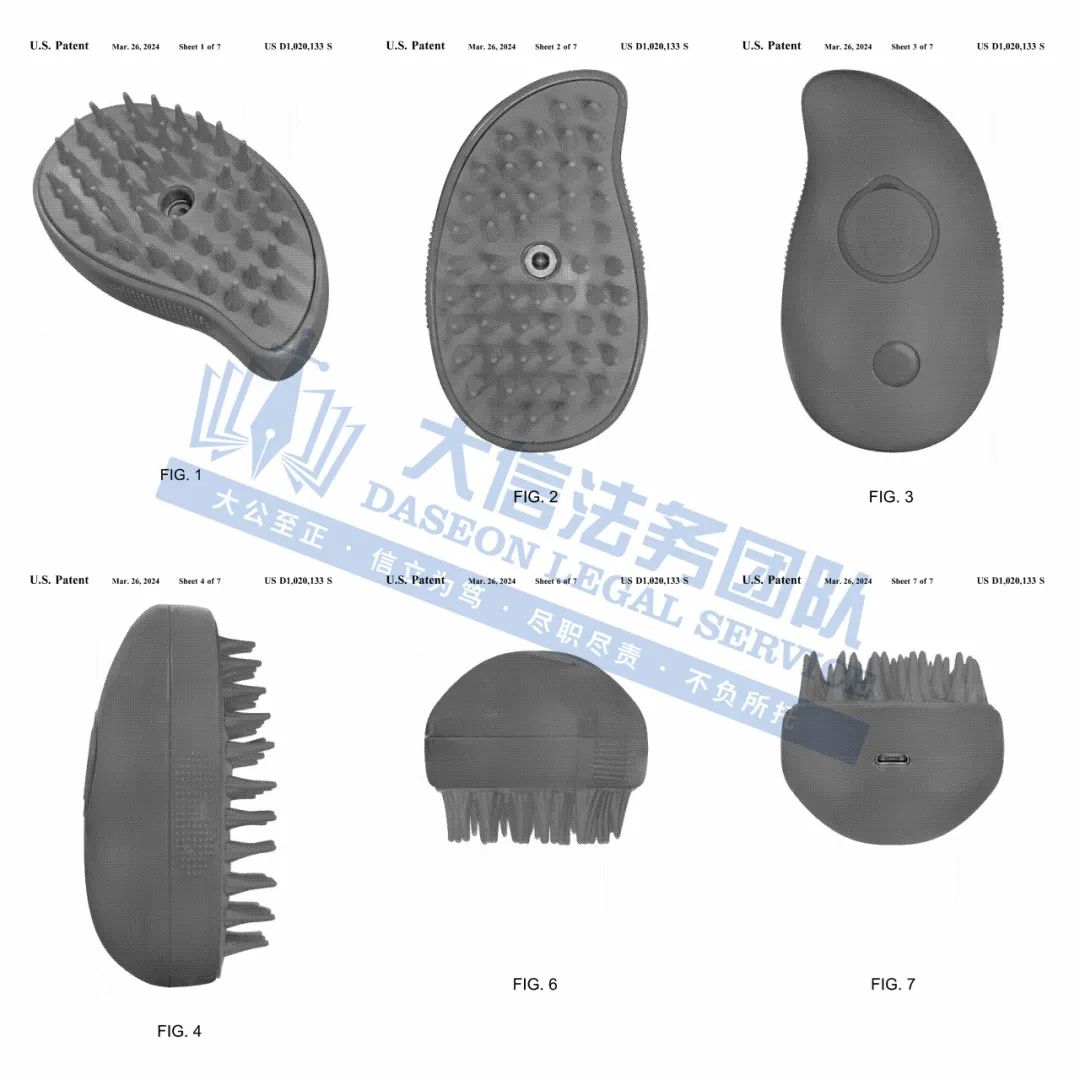 03 国人宠物毛刷专利 案件号:25-cv-02366 立案时间:2025年3月5日 原告:Heng Zhu 代理律所:Dewitty And Associates, Chtd. 原告介绍 原告是国人卖家,旗下有一款关于3合1宠物蒸汽刷的外观专利,外观采用人体工学芒果形设计,便于握持,能轻松梳理宠物各方向的乱毛,同时外观时尚有趣。外壳采用坚固耐用的ABS塑料材质,适用于所有长毛和短毛的猫狗。该毛刷集脱毛、清洁与按摩功能于一体。既柔韧又强力,确保彻底清理。