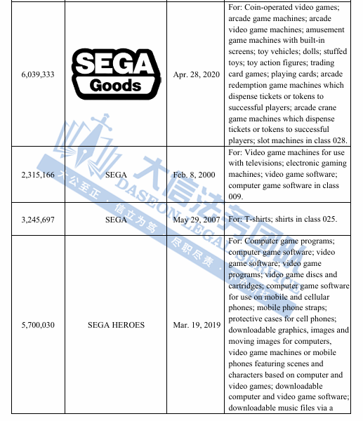 此案为商标+版权维权,原告也是TRO维权常客,侵权的重灾区、Sega公司名下商标众多,一共有223个注册商标,版权更是太多了,以下是部分案件信息,可供卖家参考,跨境卖家尽快检索下架,避免TRO侵权损失!