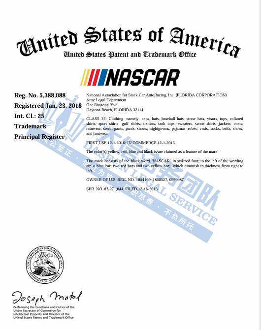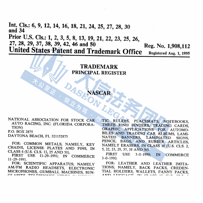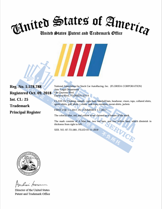 此案为商标维权,共涉及3个商标,维权关键词:NASCAR等商标,以下是商标信息,未经授权不得擅自使用,侵权风险极高!
