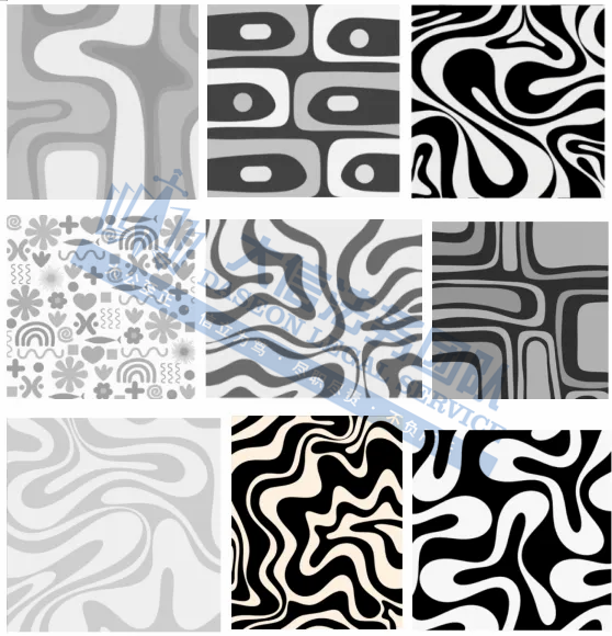 此案为版权维权,原告连发两案,共涉及5个版权作品,均为黑白相间的液体漩涡抽象图案,此外,原告旗下还注册了11张版权图,未经授权不得擅自使用,侵权风险极高!