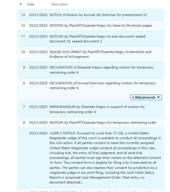 此案为版权维权,共涉及8张版权图,原告在近两年内发起了6起TRO案件,成功冻结近700个涉案店铺,以下是版权具体信息,跨境卖家尽快检索对照下架,避免造成TRO侵权风险!