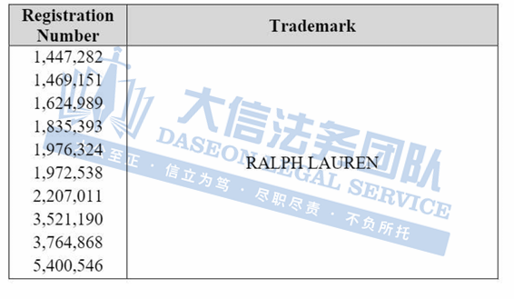 原告是美国服装品牌Ralph Lauren的子公司,专注于经营和销售Ralph Lauren品牌的产品。涵盖了男女服装、儿童服装、配饰、香水以及家居用品等多个领域。该品牌以其经典的设计、高品质的面料和精湛的工艺赢得了全球消费者的喜爱,代表着一种优雅、休闲而又不失格调的生活方式,深受中高收入人群的青睐。