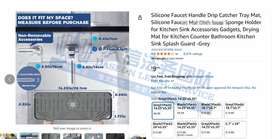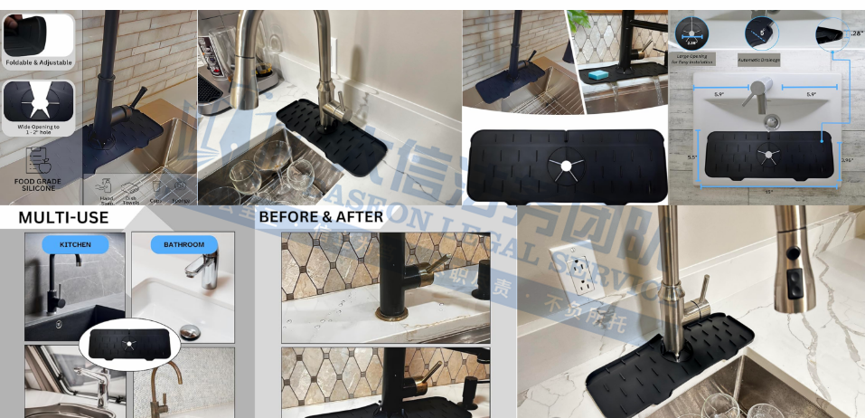 原告是国人卖家,硅胶排水垫是厨房中一项实用而高效的配件,专为保持厨房台面干净干燥而设计。置于水槽区域,可有效收集水龙头滴落的水珠以及烹饪时溅出的水滴,防止水渍残留,从而保护台面免受潮湿侵害,保持整洁有序。采用优质硅胶材质,具有较好的耐用性和柔韧性,能够承受日常使用中的磨损与挤压,不易老化变形。凸起的小竖条设计,可使积水快速导流,有效抵制细菌滋生。硅胶排水垫是提升厨房环境、优化日常操作体验的理想选择。