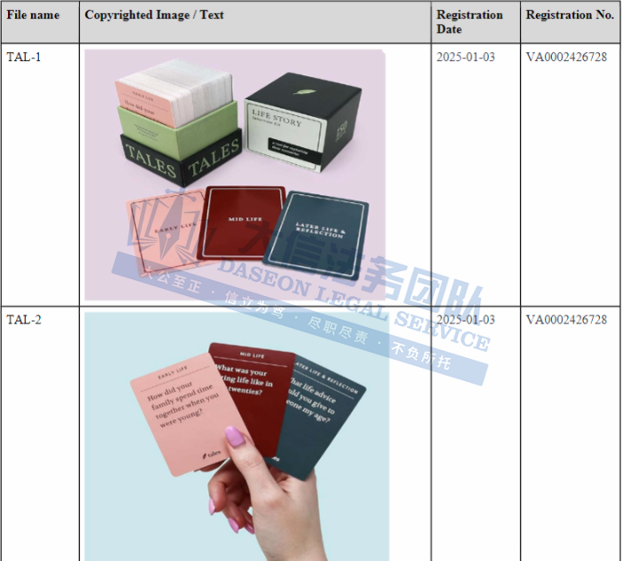 此案为版权维权,其产品在美国注册了商标和高达168个版权。本次维权共涉及24个版权,以下是版权具体信息,跨境卖家尽快检索对照下架,避免造成TRO侵权风险!