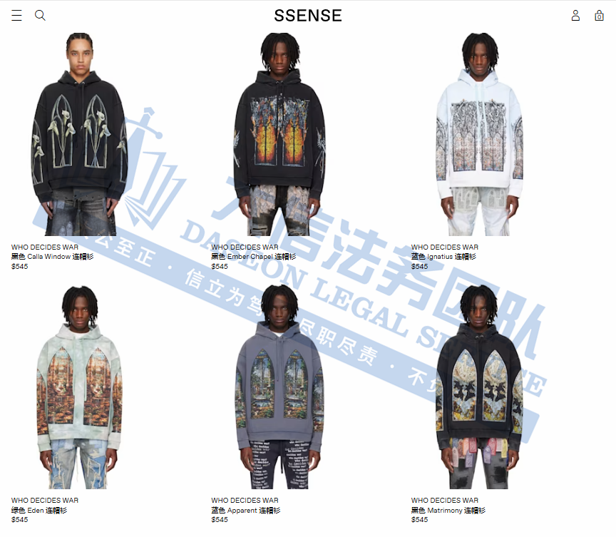 原告是一个以独特设计和精湛手工艺著称的纽约街头品牌,善于运用大胆的色彩和多样的材质,如彩色缝线、扎染元素、牛仔布、皮革和蕾丝等,打造出极具冲击力的视觉效果。以其独特的朋克和HipHop风格闻名,通过刺绣、蕾丝叠加、磨损做旧和镂空等手法,呈现出独特的视觉效果。Who Decides War的明星单品,深受HipHop巨星如Playboi Carti和Joey Badass的喜爱,在近年来逐渐受到时尚界的认可和关注,成为新晋大热品牌之一。