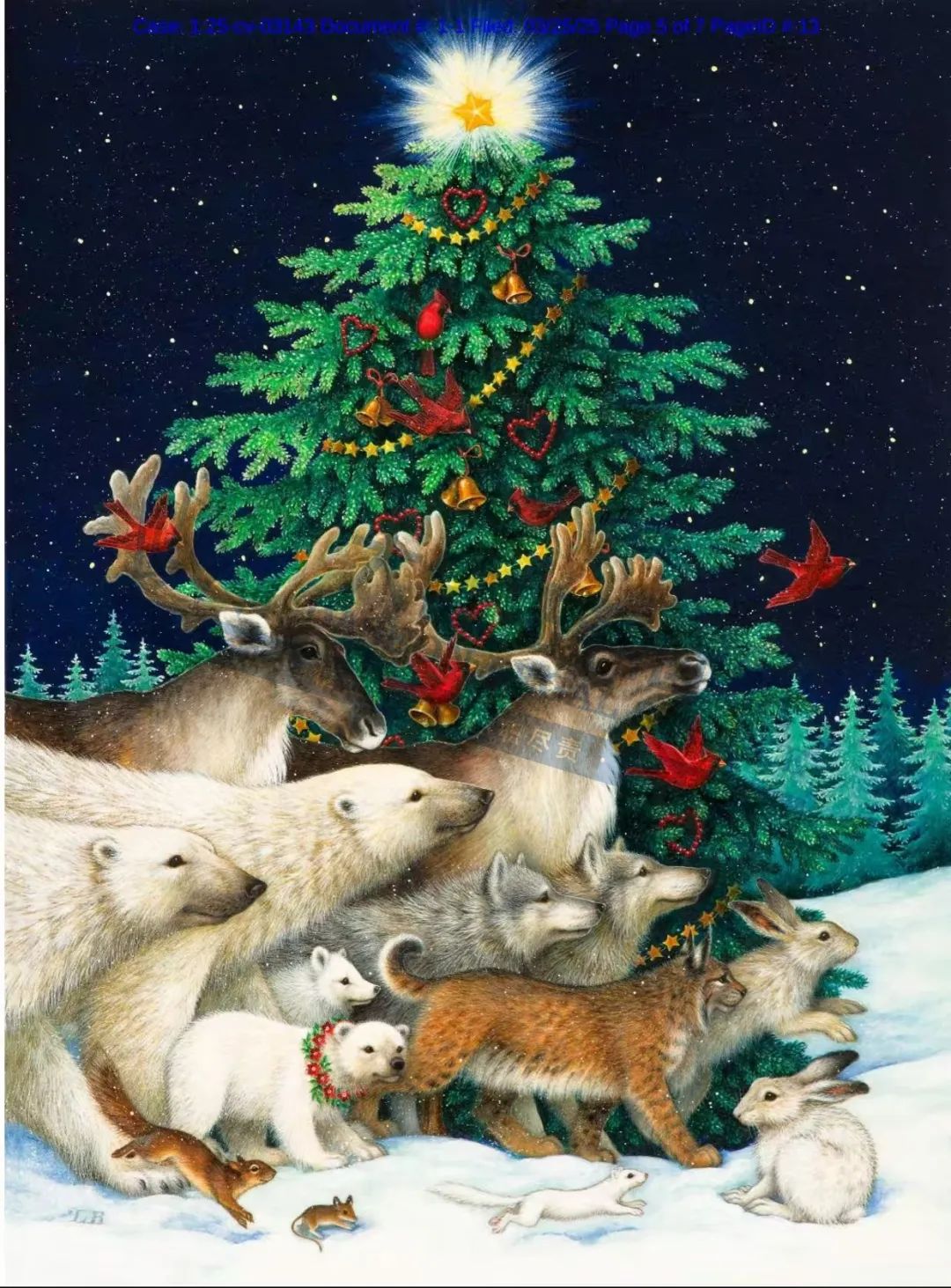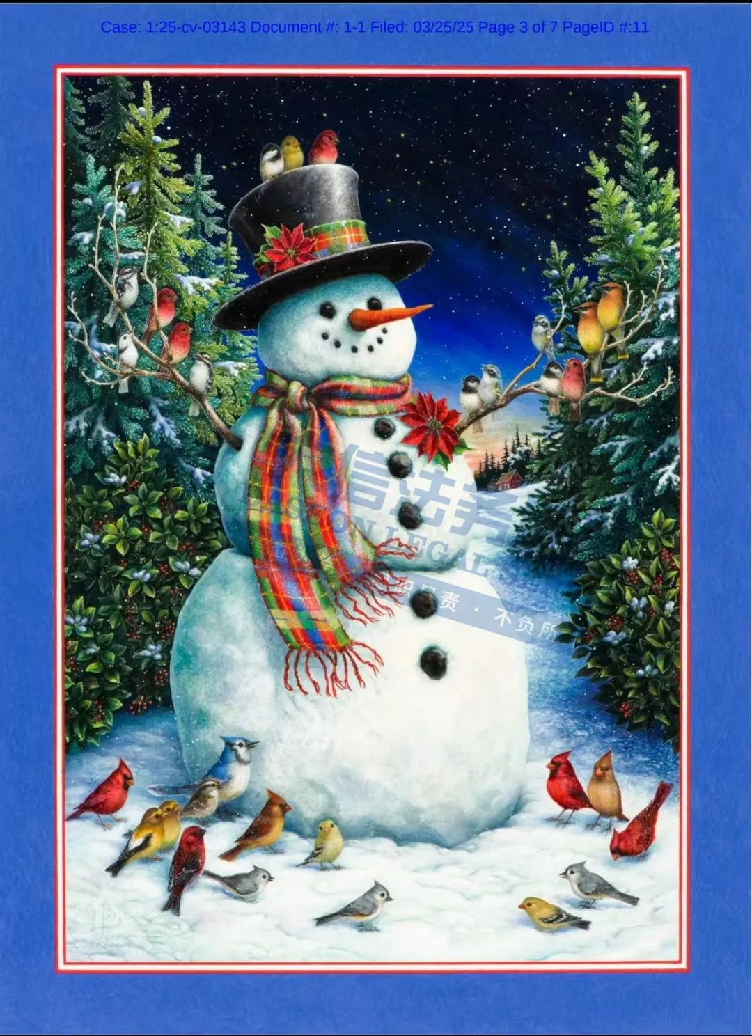 此案为版权维权,Lynn Bywaters在美国共注册有25个版权作品,本次仅涉及VA 2-414-482、VA 2-414-467和VA 2-414-485三个版权作品,均与圣诞元素相关,未经授权不得擅自使用,侵权风险极高!
