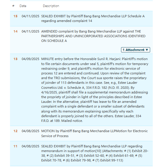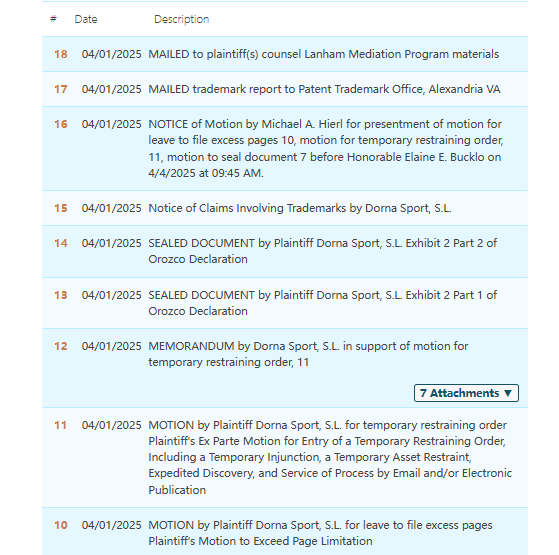 01 Outward Hound宠物慢食碗 案件号:25-cv-60699 立案时间:2025年4月10日 原告:The Kyjen Company, LLC 代理律所:BSF 原告介绍 原告是一家位于美国科罗拉多州的宠物用品公司成立于2005年。Outward Hound是旗下知名的宠物产品制造商,宠物慢食碗通过独特脊部设计,可延长宠物进食时间达10倍,有效改善暴饮暴食、消化不良及肥胖问题,深受消费者青睐。包括Best Friends by Sheri,Planet Dog,Petstages,Charming Pet,Wholesome Pride宠物零食和Nina Ottosson治疗益智玩具。 案件分析 此案为商标+专利维权,主要涉及 11个专利 和 4个商标,商标涵盖“OUTWARD HOUND”“Hide A Squirrel”“Fun Feeder”“Tower of Tracks”等文字商标,以下是涉及的相关信息,跨境卖家尽快检索下架,避免造成TRO侵权损失! 产品展示 02 Arctic Monkeys北极猴子乐队 案件号:25-cv-03701、25-cv-03943 立案时间:2025年4月7日、2025年4月12日 原告:Bang Bang Merchandise LLP 代理律所:AGDG 原告介绍 原告是由英国摇滚乐队Arctic Monkeys成员共同成立的公司,于2002年成立,Arctic Monkeys作为21世纪英国摇滚的标杆,既延续了披头士、绿洲乐队的英伦摇滚传统,又通过风格创新与数字化营销重塑了独立音乐的全球影响力。其作品持续探索音乐边界的勇气,使其成为跨越世代的文化符号,并开创了数字时代音乐推广的新模式。 案件分析 此案为商标维权,涉及商标词:Arctic Monkeys;值得注意,2024年该律所已成功发起多起TRO案件,并涉及351家店,目前已经缺席判决,跨境卖家尽快检索自家产品,未经授权不得擅自使用,侵权风险极高! 案情进展 产品展示 03 MOTOGP 世界摩托车锦标赛 案件号:25-cv-03427 立案时间:2025年3月31日 原告:Dorna Sport, S.L. 代理律所:HSP 原告介绍 原告是1988年成立的西班牙公司,为全球顶级摩托车赛车赛事组织与商业化运营方。MotoGP(全称:Motorcycle Grand Prix)是全球最顶尖且备受瞩目的摩托车公路赛,由国际摩托车联合会(FIM)主办。这项赛事汇聚了世界一流的摩托车制造商、车队以及车手,代表了摩托车竞速领域的巅峰水准。MOTOGP赛事全球瞩目,粉丝众多,不仅推动了摩托车运动发展,还带动了当地经济与旅游业,成为一种文化现象。 案件分析 此案为商标维权,原告近几年发起超多TRO案件,涉及几百家店铺,以下文字和图案商标,涵盖类目广泛,未经授权不能随意使用,侵权风险极高! 案情进展 产品展示 04 油瓶开启工具专利 案件号:25-cv-03944 立案时间:2025年4月11日 原告:My Oil Key, LLC 代理律所:Keener 原告介绍 原告的油瓶开启钥匙是一种多功能的工具,主要用于移除和安装精油、香水、药用液体等小瓶子的分配插件,能够轻松移除瓶子的分配插件,如滚珠、滴管、孔径缩小器等,还可以将新的插件插入不同尺寸的瓶子,采用耐用且适合与瓶内液体接触的材料,如6061铝、尼龙树脂、聚甲醛等,My Oil Key, LLC 提供不同款式的油瓶开启钥匙,其中“Big Cheese”款式形似瑞士奶酪块,深受顾客喜欢。 案件分析 此案为专利维权,涉及一项发明专利,专利号:US 10322836B2,以下是涉及专利的具体信息,跨境卖家尽快检索下架,未经授权不得擅自使用,侵权风险极高! 案情进展 产品展示 今天就分享到这里了,感谢你的阅读。大信团队会持续为你带来最新的侵权咨询。想要了解更多内容,可关注我们【大信团队】。 我们始终坚信,法律服务没有捷径,容不得任何滥竽充数的行为。大信法务团队有中美资深律师,在美国TRO诉讼行业深耕多年,处理过上万起TRO侵权案,致力于为中国跨境电商卖家保驾护航! 如果有关于店铺大额资金冻结、同行解决不了、缺席判决、多次谈判博弈无法和解的案子可以添加我们联系方式,我们将为你提供最优质的法律服务。
