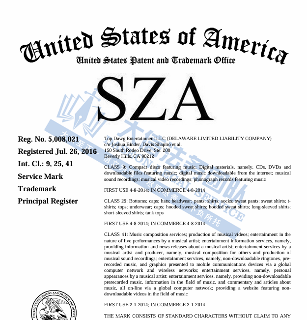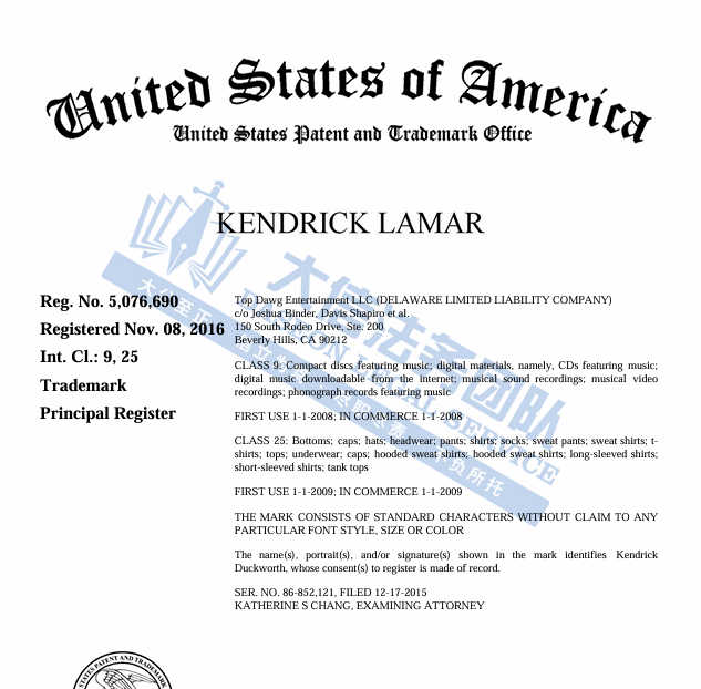 Kendrick、SZA 歌手商标
