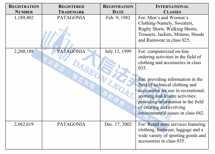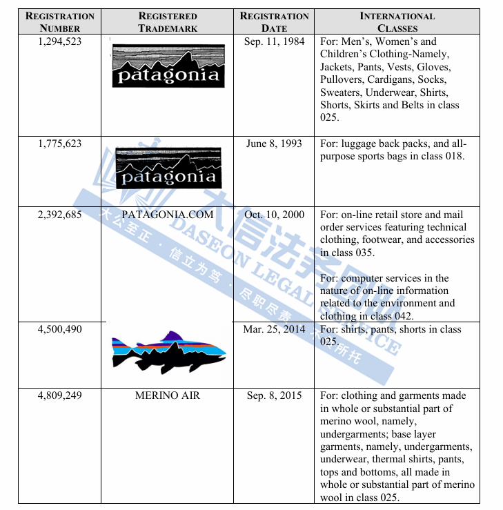 此案为匿名商标维权,涉案信息还未公开,各位跨境卖家可参考22-cv-00832、22-cv-00403的维权商标,值得注意,Patagonia 品牌的标志性图案,灵感源自 Mt. Fitz Roy 天际线的锯齿状山峰轮廓,各位卖家尽快对照下架,不要使用此类图案,侵权风险极大!