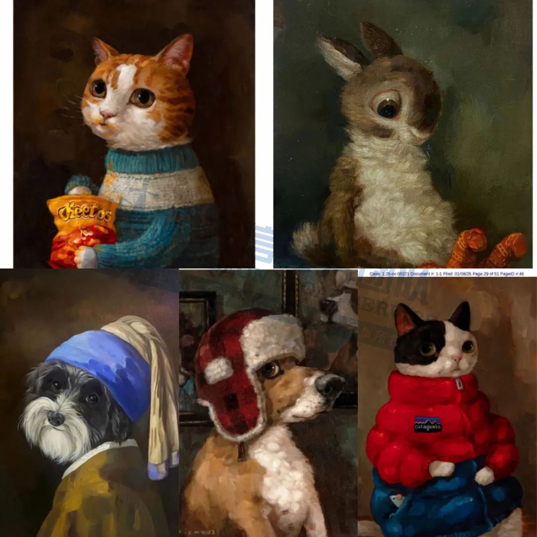 原告是一位具有现代视野的英国现实主义艺术家,主要以现实主义油画风格为主,擅长捕捉小动物的生动表情和姿态,她的画作灵感主要来源于自然界中的动物情感。她认为动物具有人类的情感,并试图在画作中捕捉这一点。同时,她的幽默感也为作品增添了许多趣味和生动性,她的作品充满了生活气息和温馨的氛围,深受孩子们的喜爱。