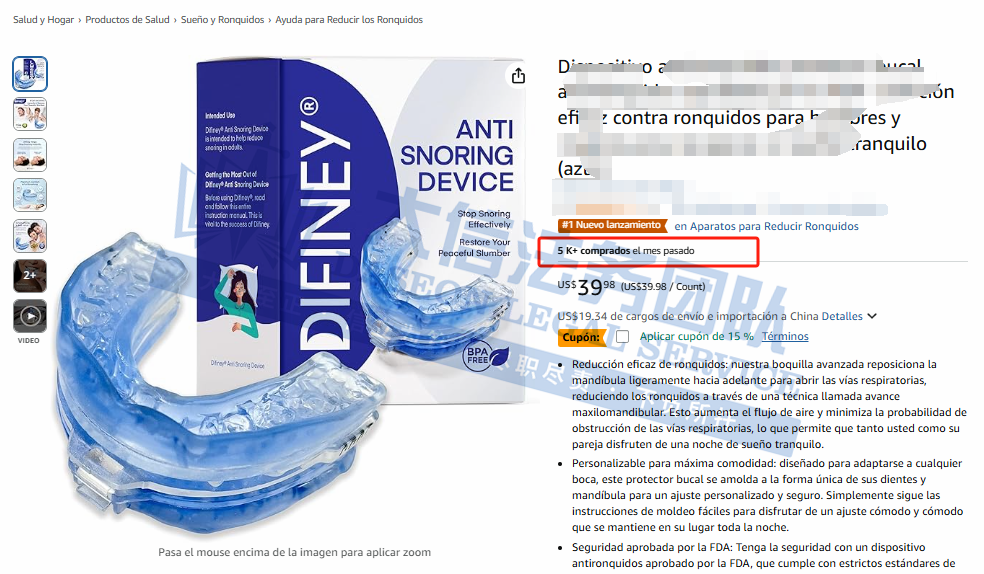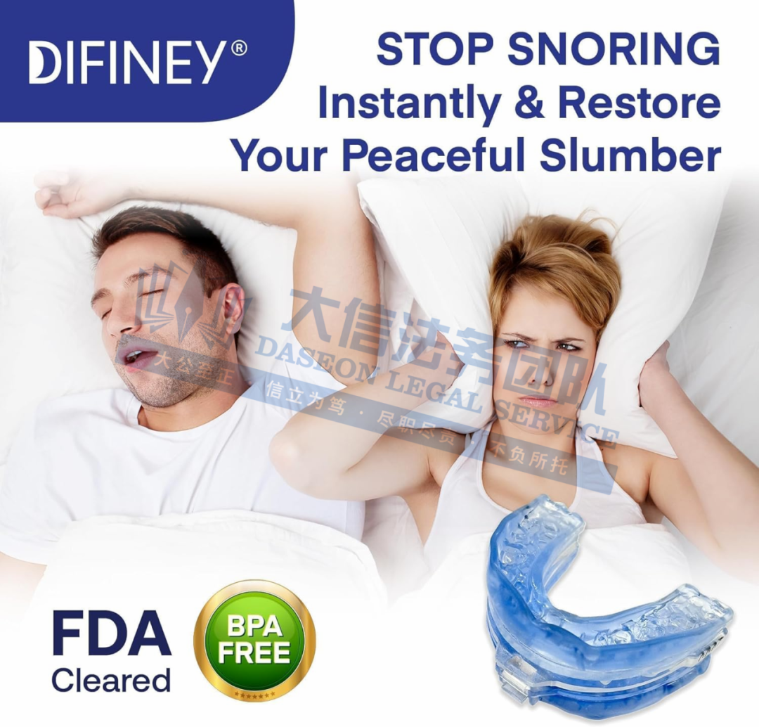 原告Difiney 止鼾器采用“热塑成型”技术,通过将下颌轻轻向前移动,打开气道,从而减少打鼾。它能够有效解决因气道部分阻塞导致的打鼾问题。该产品采用柔软的材料制成,佩戴时不会对口腔造成不适。许多用户反馈,使用后能够获得舒适的睡眠体验,体积小巧,便于携带。用户可以轻松将其放入行李箱或手提包中,无论是在家中还是旅行中都可以使用。