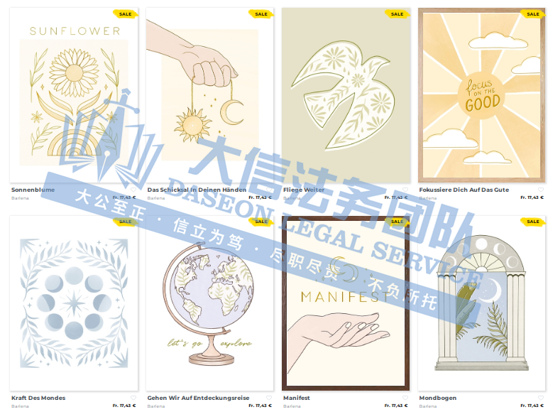 原告是一位奥地利插画师和平面设计师,她的作品常常融合自然元素、几何图形和鼓舞人心的短语,旨在传递温暖与正能量。其作品以柔和的色调和精细的线条为特征,常被描述为宁静、舒适且极简风。她对自然、夏日、海洋以及生活中的美好瞬间充满热爱,这些元素也是她创作灵感的重要源泉。常以纸笔起稿,后期在电脑上完成润色,作品广泛应用于贴纸、海报、家居装饰画等领域。