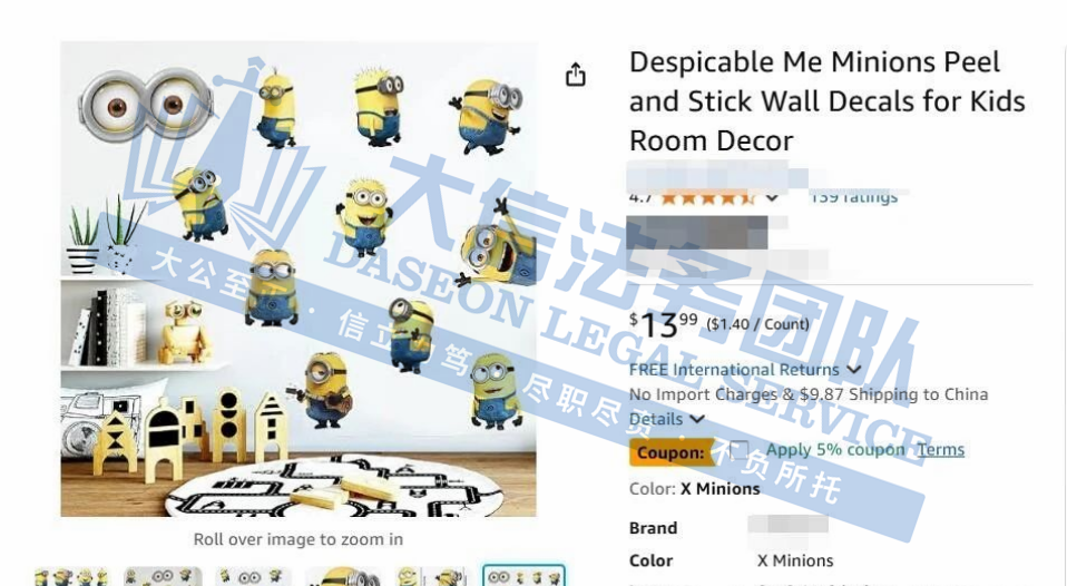此案为商标+版权维权,文字商标:MINIONS(小黄人)、FAST & FURIOUS(速度与激情)、JAWS(大白鲨)、E.T.THE EXTRA-TERRESTRIAL(E.T.外星人),图形商标:小黄人经典形象(黄色胶囊状、护目镜造型)、速度与激情系列LOGO、大白鲨电影海报鲨鱼形象、E.T.外星人轮廓, 版权作品:小黄人系列电影及衍生动画、速度与激情系列电影镜头、大白鲨电影片段、E.T.外星人经典场景,以下是涉案的具体信息,跨境卖家尽快对照下架,避免造成TRO侵权损失!