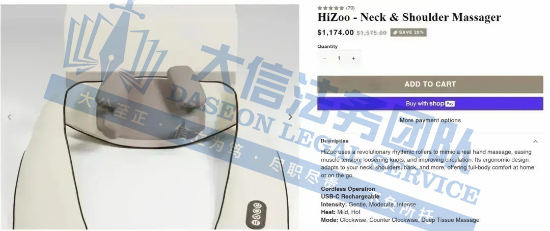 原告是一家专注于健康护理领域的公司,其主营业务涵盖按摩器具和物理治疗设备等产品。这些产品在市场上具有一定的知名度和影响力,为消费者提供了多样化的健康护理解决方案。长时间坐在办公桌前工作的人群,经常会出现颈部和肩部的酸痛,使用HiZoo按摩仪可以有效缓解这些不适。对于一些患有颈椎病或肩周炎的老年人来说,这款按摩仪也是一个不错的选择。