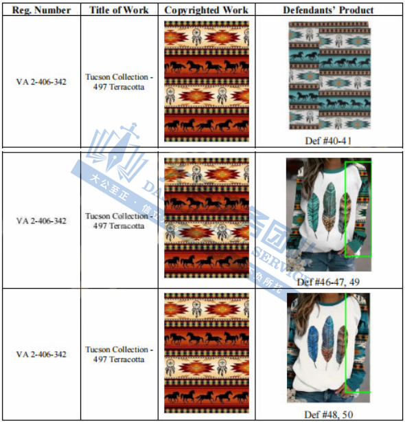 此案为版权维权,本次维权的是VA 2-411-601和VA 2-411-600两个作品,以下是具体涉案信息,跨境卖家尽快检索下架,避免造成TRO侵权损失!