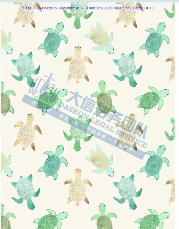 此案为版权维权,涉及原告旗下13张版权图,结合往期案件,这些画作常被侵权使用,以下是具体涉案信息,跨境卖家尽快检索下架,避免造成TRO侵权损失!