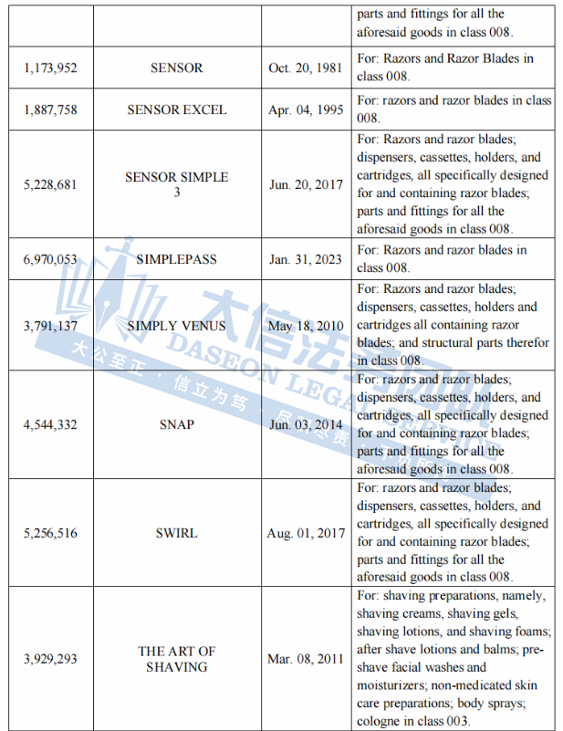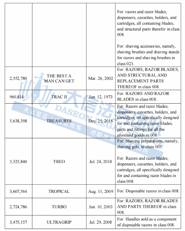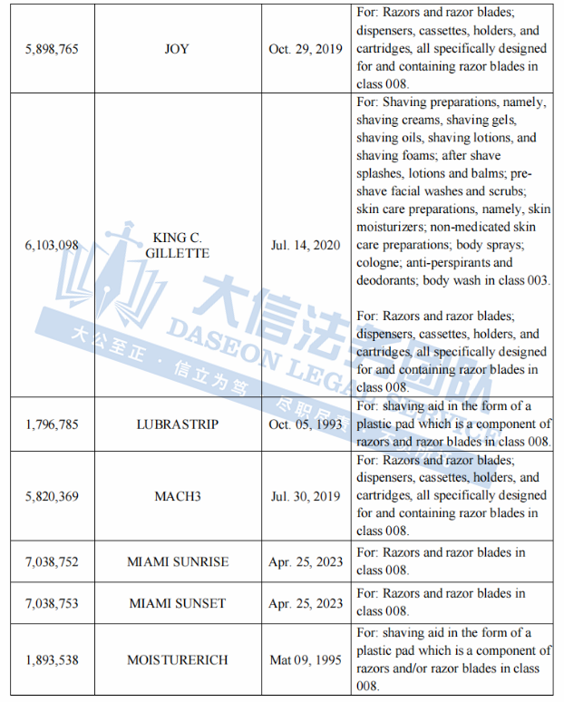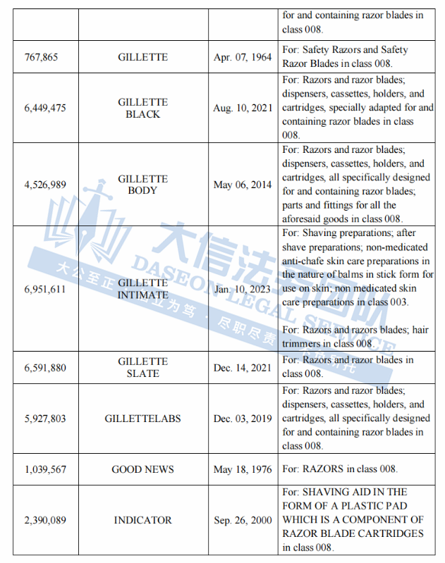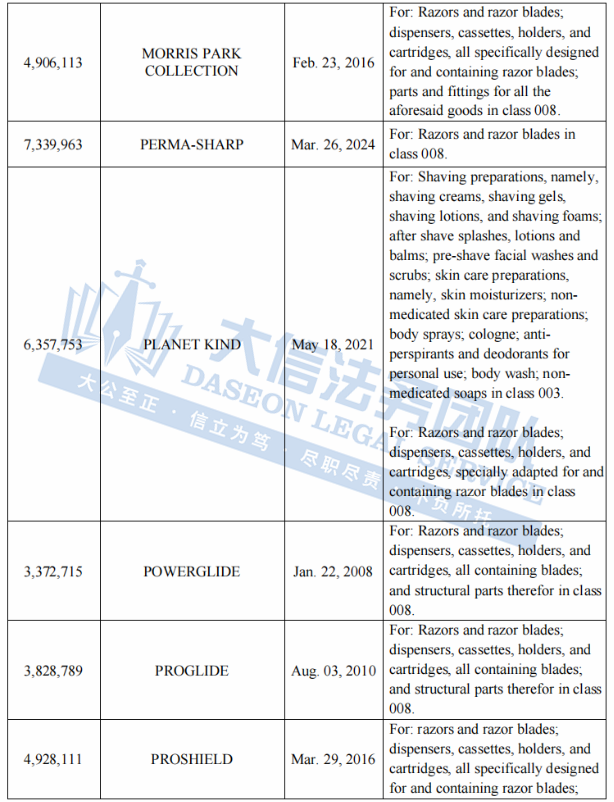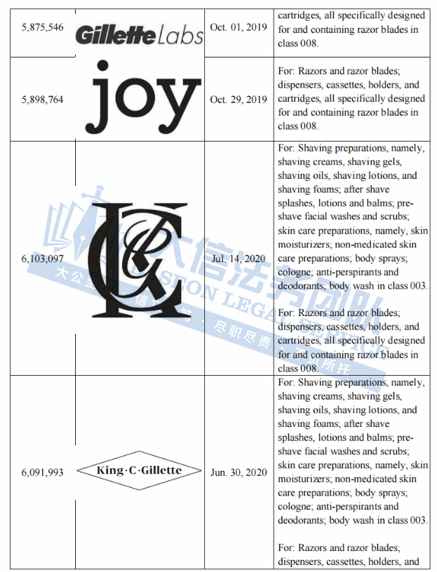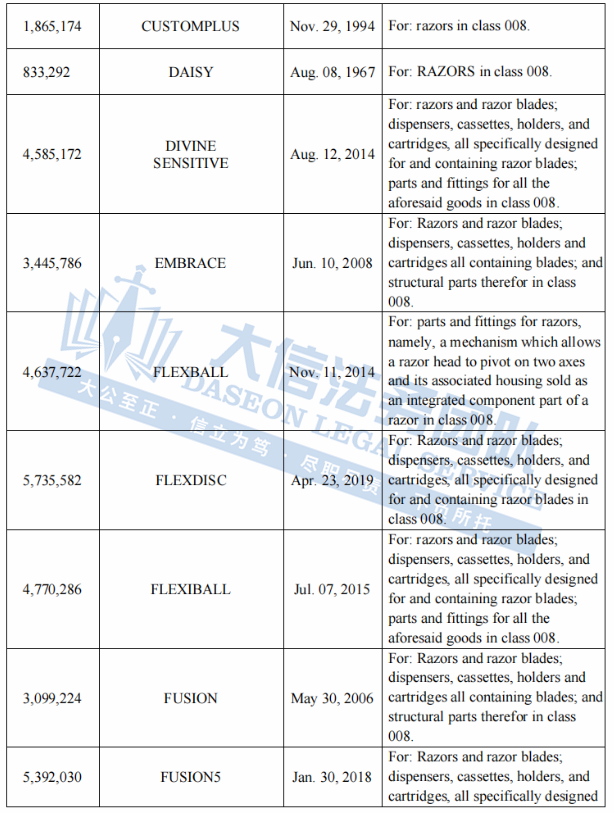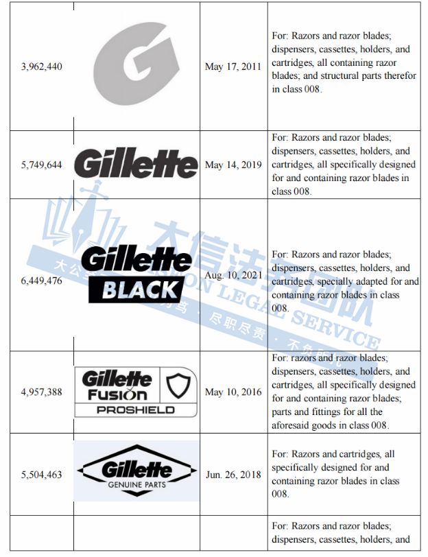 原告吉列公司由坎普·吉列于1901年在美国创立,1903年,吉列推出了世界上第一把安全剃须刀和可更换刀片,1917年,在美国国内的市场占有率已达80%,奠定了其在刮胡刀领域的领导地位,吉列剃须刀采用优质材料和精密制造工艺,刀片锋利且耐用。例如,锋隐系列采用五层纳米刀片,剃须效果出色,刀头设计能灵活贴合面部轮廓,减少剃须死角。部分产品配备亲肤润滑条,遇水释放润滑力,保护皮肤。例如,吉列锋隐致顺剃须刀的润滑条能有效减少剃须时的摩擦,吉列剃须刀以其高品质和创新技术,一直是男士剃须护理领域的领导者,其产品系列丰富,能满足不同用户的需求。