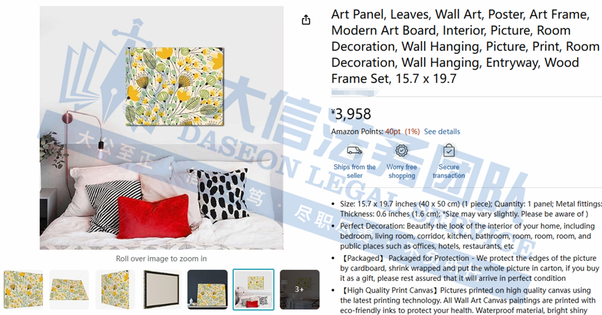此案为版权维权,在美国注册了27项版权,但此次维权的涉及13张作品,以下是具体涉案版权信息,未经授权不得擅自使用,侵权风险极高!跨境卖家尽快检索下架,避免造成TRO侵权损失!