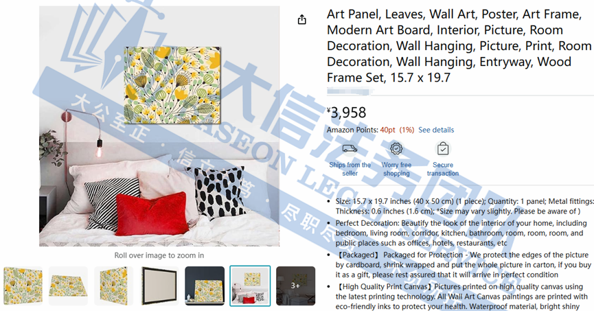 此案为版权维权,在美国注册了27项版权,刚发了3案,时隔一天,又新增版权再次发案,共涉及25张作品,以下是具体涉案版权信息,未经授权不得擅自使用,侵权风险极高!跨境卖家尽快检索下架,避免造成TRO侵权损失!