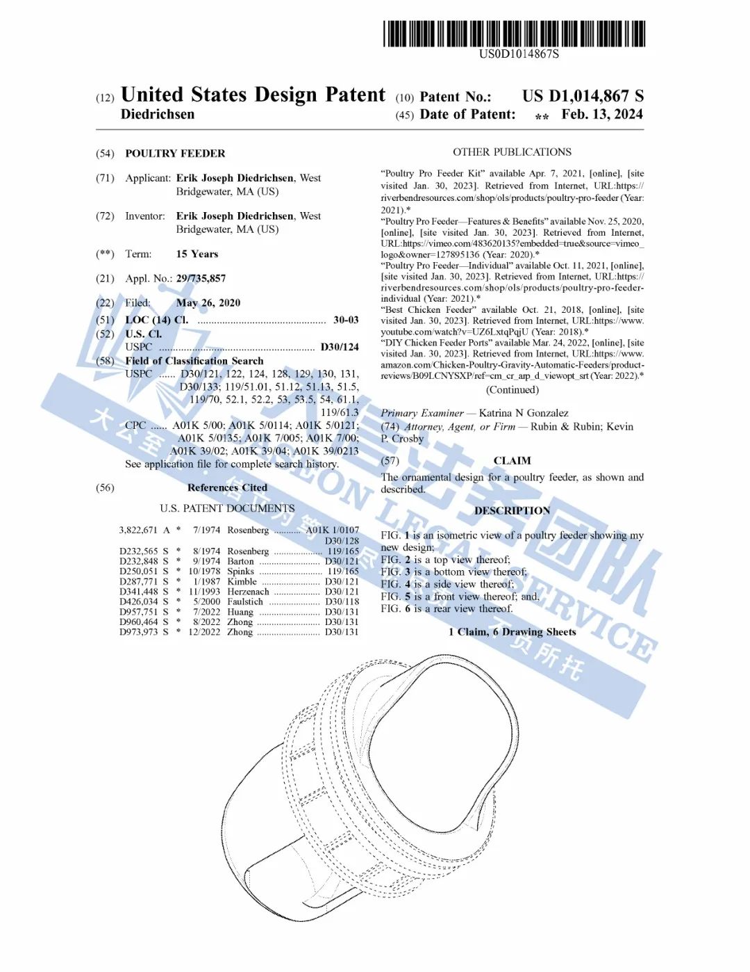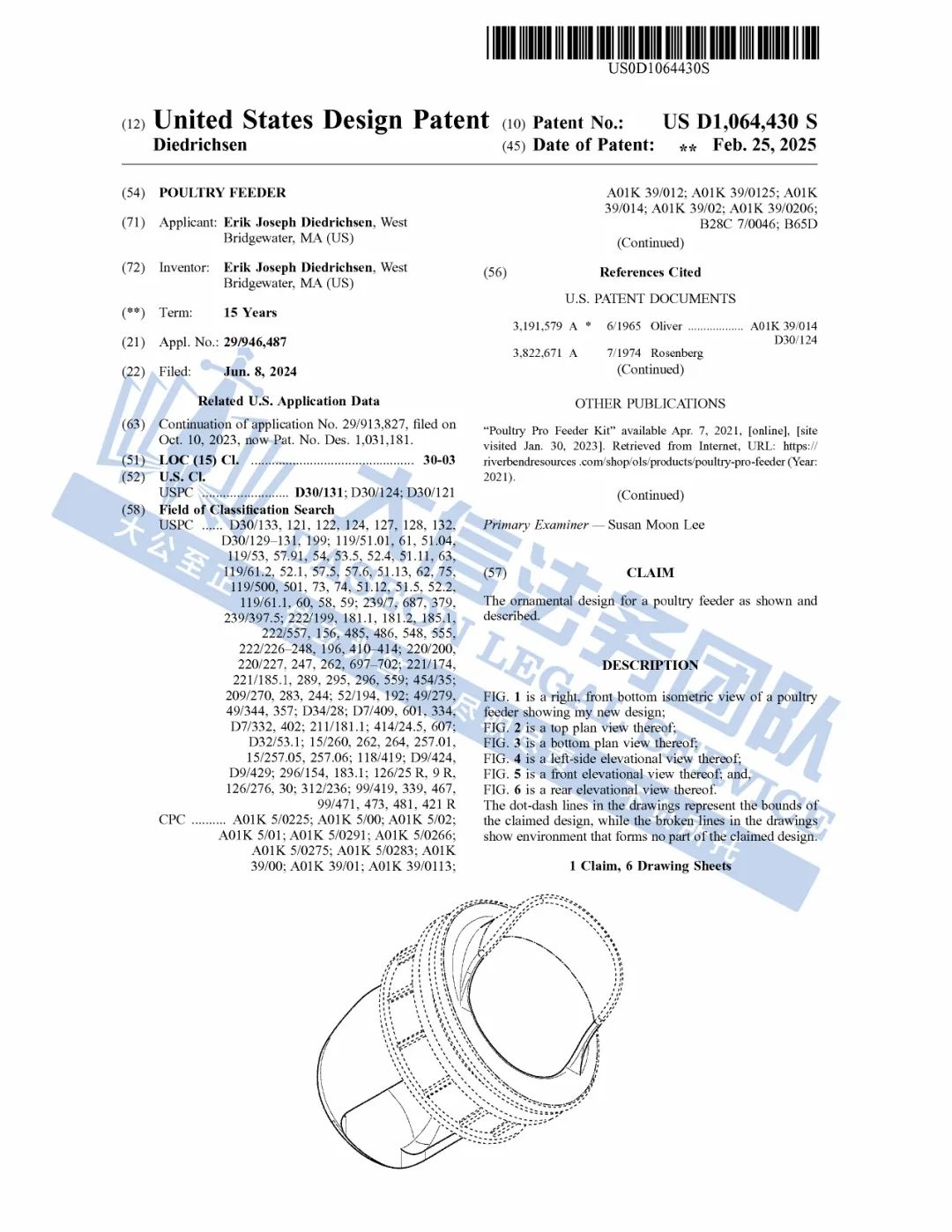 原告是一家以生产和销售家禽用品为主的公司,其产品线涵盖家禽饮水机、家禽喂食器等多种产品。家禽喂养器是一种用于自动或半自动喂养家禽的设备,广泛应用于家庭养殖和大规模养殖场,能够有效提高养殖效率、降低人工成本并保障家禽的健康。家禽喂养器主要分为自动喂水器和投料喂养器两大类。家禽喂养器的出现极大地改善了家禽养殖的效率和管理水平,是现代养殖不可或缺的工具。