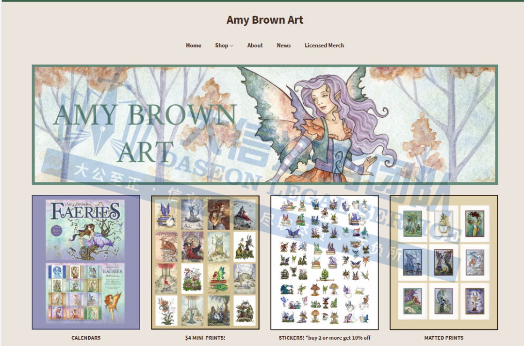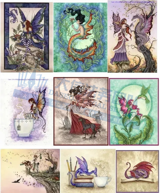 原告是来自美国华盛顿的艺术家,是一位自学成才的插画家,她的作品以奇幻仙子为核心,常见元素包括仙子、龙、蝴蝶、蘑菇、猫等。她构建了一个个充满魔法和神秘感的奇幻世界,其中的小精灵和龙等幻想生物是主角,主要使用水彩画进行创作,也会运用墨水、彩色铅笔、金属颜料、中性笔等多种工具,以达到预期效果。其作品色彩丰富且和谐,细节精致,画面充满梦幻和神秘感,作品还曾登上知名杂志《Faerie Magazine》(现已更名为《Enchanted Living》)的封面,并在Krab Jab画廊展出。