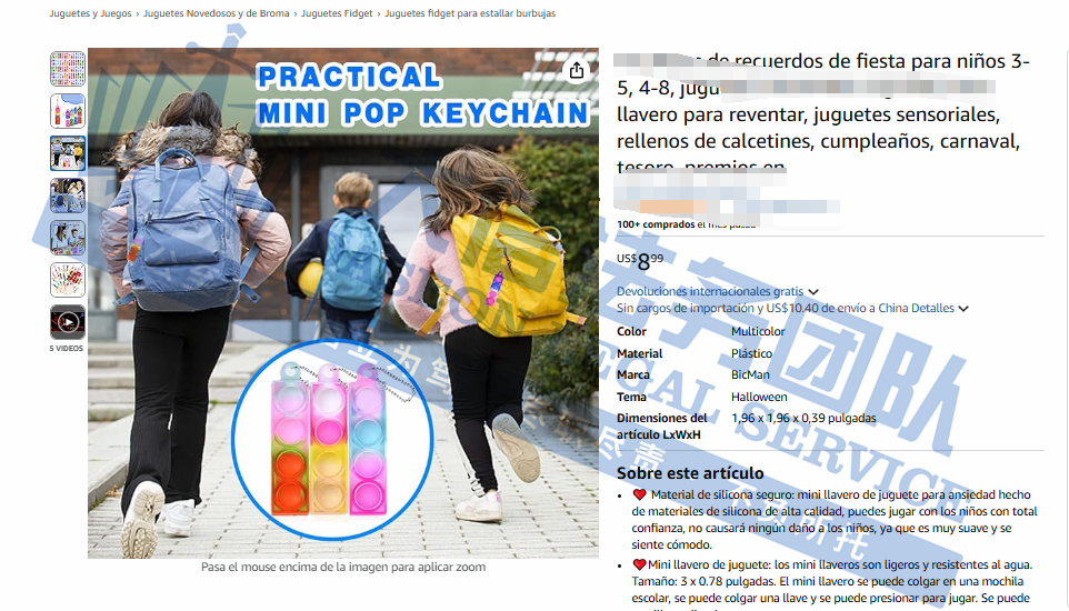 原告是国人卖家,主要生产和销售一款解压钥匙扣。这款钥匙扣采用安全无毒的硅胶材质,而且柔软的弹性材质带来清晰的POP声,可有效缓解压力。使用简单,可以进行翻转、按压、揉捏等操作,以独特的仿生结构设计为核心,形成区别于同类产品的显著视觉特征,这种迷你解压钥匙扣适合所有年龄段的人群。