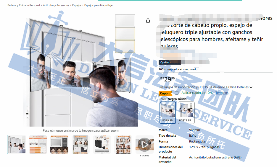 原告是一家致力于为男士打造高端DIY理发体验的创新企业。由Ryford H. Estores创立,旗下有一款核心产品360°迷你折叠镜子搭配专业理发工具,三面镜子可沿X轴和Y轴自由旋转,同时保持支架静止,镜子可在折叠和展开位置之间自由调整,通过紧固件固定,可调节高度。在使用过程中,用户可以自由使用双手进行其他操作,为用户提供了一种方便、轻便且耐用的设计,适用于各种场合,如化妆、理发等。