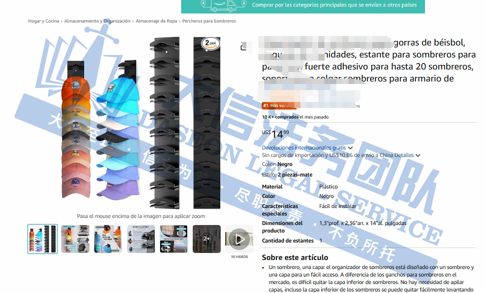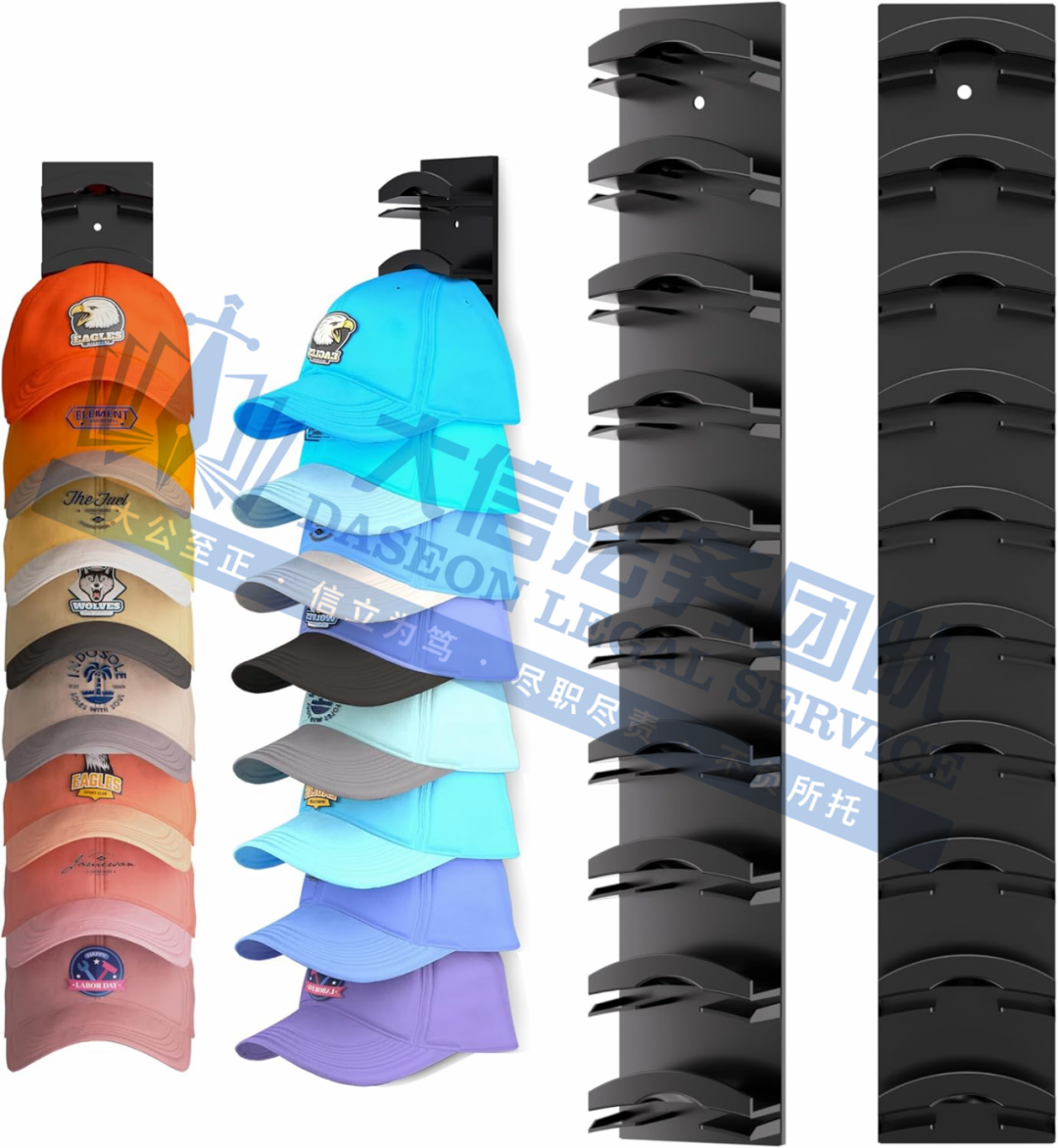 原告是国人卖家,旗下有一款棒球帽帽架,采用垂直支撑面,上下分层布局的连接端口通过水平隔板划分,每层可独立承托帽檐,配合顶部定位平台与底部支撑平台的间距,形成“深槽式”固定结构,即便多顶帽子重叠存放也能保持挺括廓形,有效避免挤压变形。构简单可靠,帽子的取放操作便捷,用户可以轻松地将帽子放入收纳架或从收纳架中取出,使用体验良好。