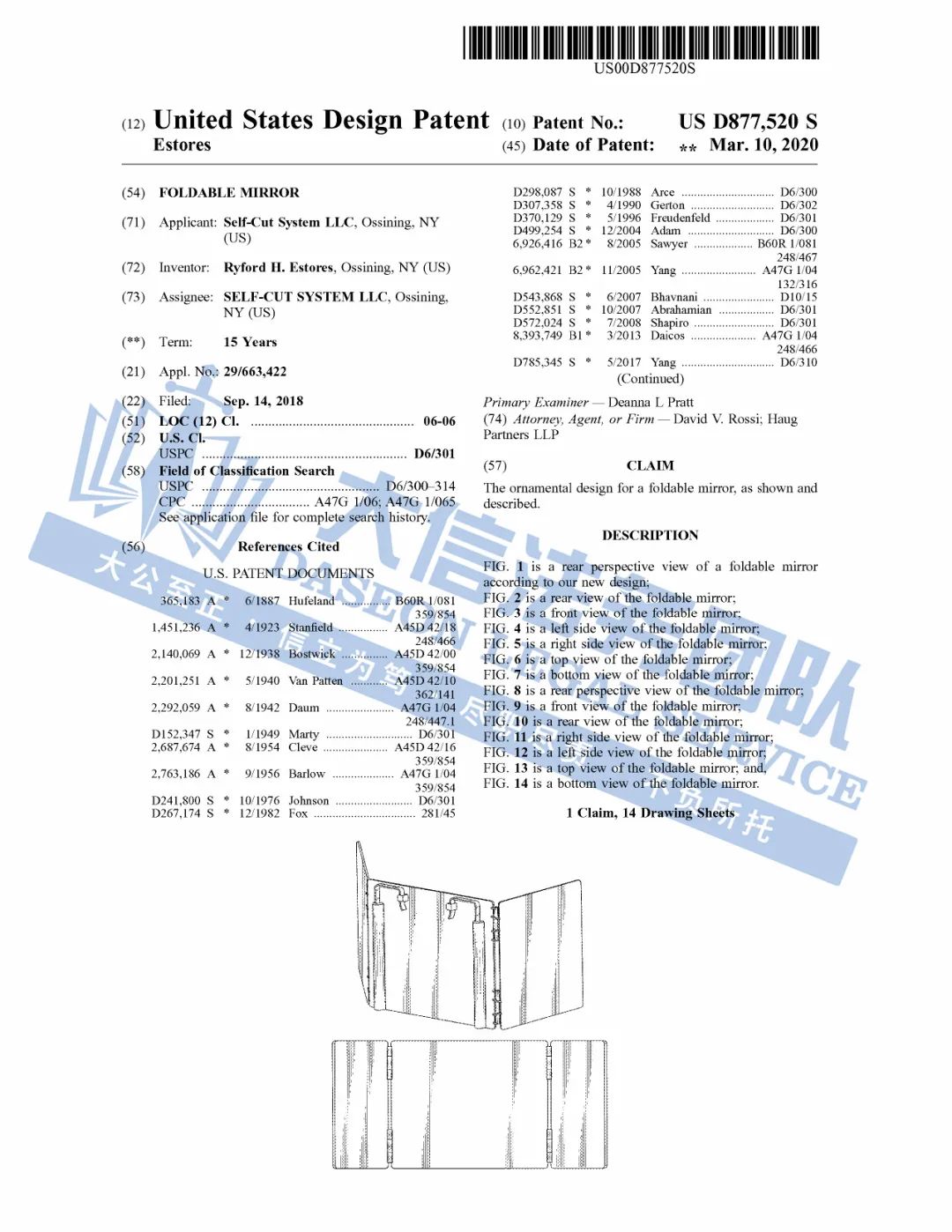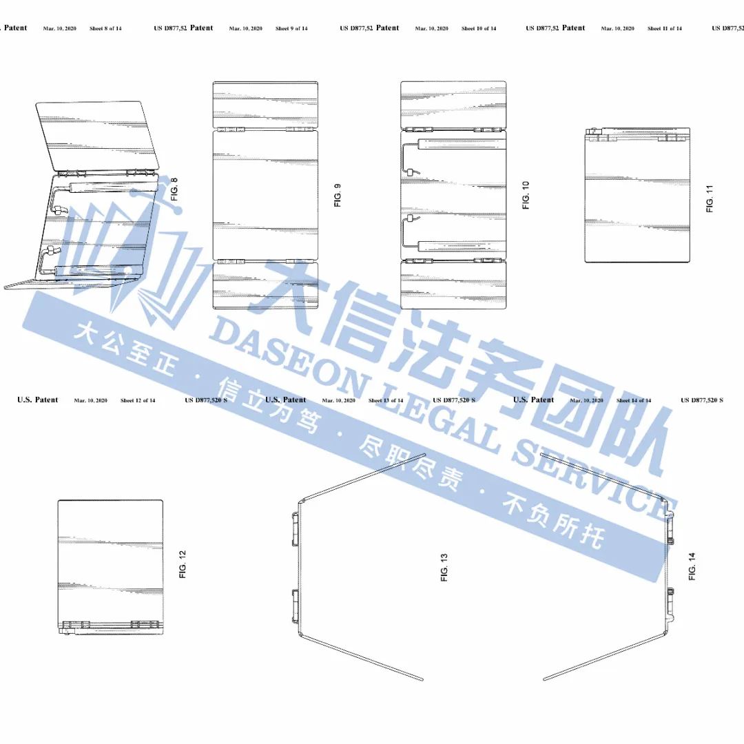 此案为专利维权,设计一项外观专利,专利号:US D877520S,于2020年3月10日下证,以下是涉及专利的具体信息,未经授权不得擅自使用,侵权风险极高!跨境卖家尽快检索下架,避免造成TRO侵权损失!