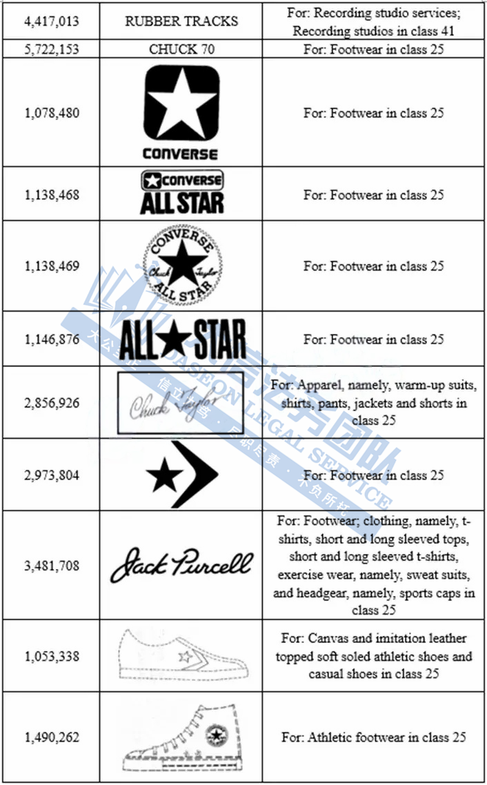 原告匡威(Converse),诞生于1908年,总部位于美国波士顿,是一个美国休闲鞋运动品牌,匡威在1917年正式推出了ALL STAR帆布鞋。1923年以具有运动天赋和口才的篮球明星CHVCK TAYLOR的亲笔签名成为著名商标,集复古、流行、环保于一身的ALL START帆布鞋。在中国市场,现在上市的有ALL STARCHUCK TAYLOR (全明星经典帆布鞋)、JACK PURCELL(开口笑)、PRO STAR(古典帆布鞋)三大系列,2003年,NIKE以三亿五百万美金收购Converse。