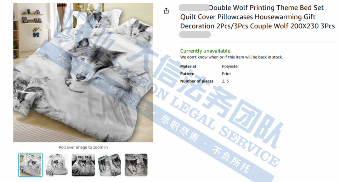 此案为版权维权,版权号:VA 2- 360-240和VA 2-359-854的两个作品,以下涉案信息可供卖家参考,未经授权不得擅自使用,侵权风险极高!跨境卖家尽快检索下架,避免造成TRO侵权损失!