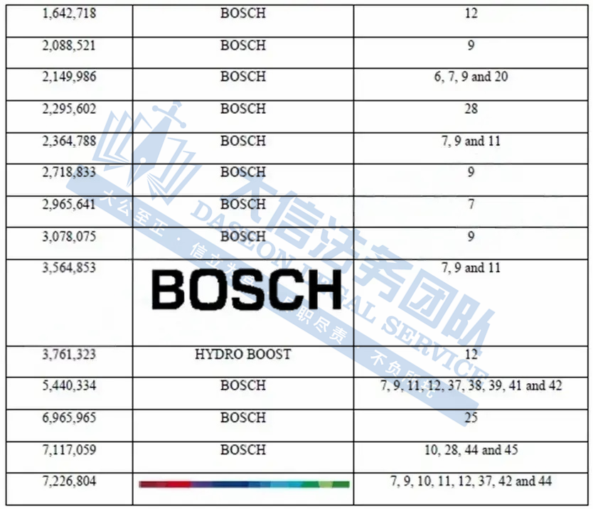 此案为商标维权,涉及24个图文商标,关键词:BOSCH、HYDRO BOOST等,以下涉案信息可供卖家参考,未经授权不得擅自使用,侵权风险极高!跨境卖家尽快检索下架,避免造成TRO侵权损失!