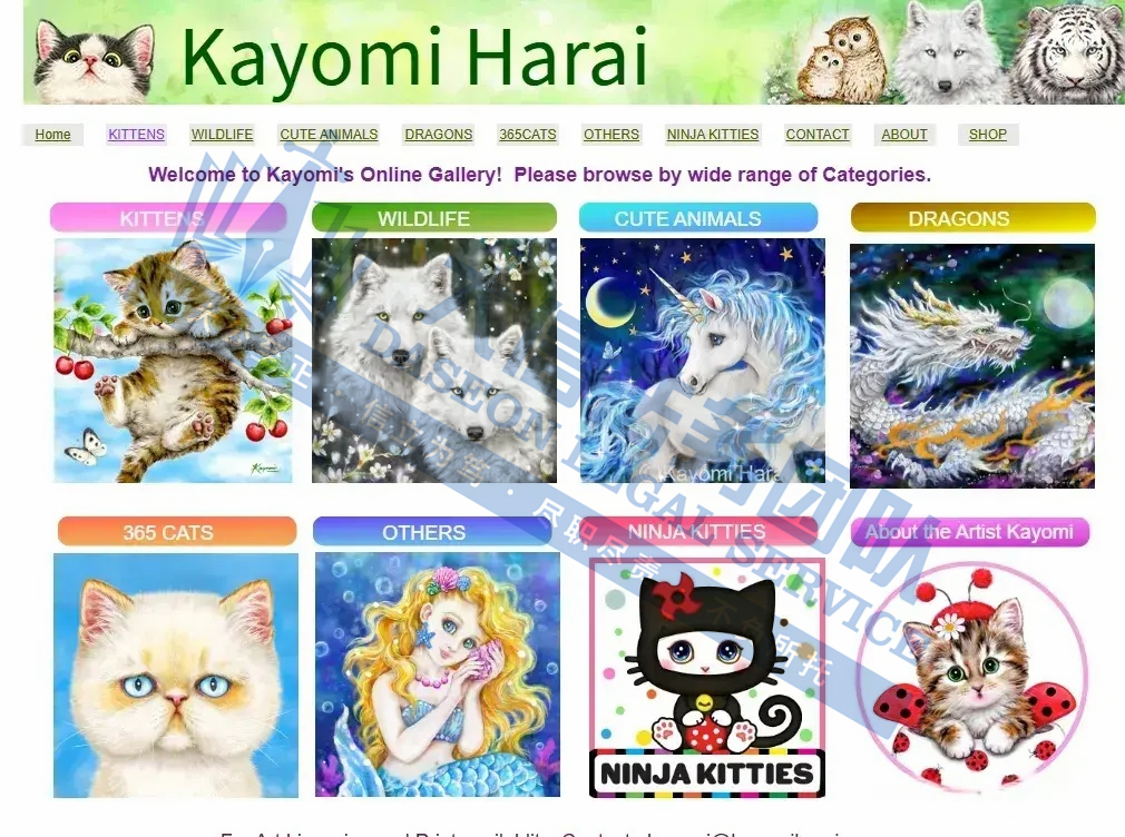 原告是一位自学成才的艺术家,出生于日本大阪,后移居美国加利福尼亚州,作品多以动物为中心,利用水彩、粉彩和彩色铅笔发展成独特的绘画风格,以柔和细腻的笔触和丰富的色彩为特点,她善于捕捉动物眼神中所蕴含的表情和个性,将动物们栩栩如生地呈现在画布上,她的画作常用于贺卡、拼图、日历和其他家居装饰品中。