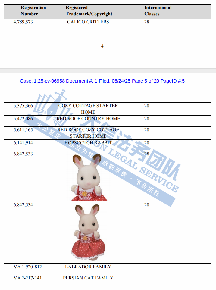 原告是日本的一家公司,Calico Critters 是日本 Epoch 公司出的一款超受欢迎的小动物玩偶系列,于 1985 年在日本推出,Calico Critters通过拟人化的仓鼠、兔子、小猫等动物角色,构建出充满温情的“印花布村”世界,每个角色拥有独特名字、职业与背景故事,搭配精致的树屋、农场、学校等场景配件,鼓励儿童通过角色扮演理解家庭与社区价值,兼具娱乐与教育意义。