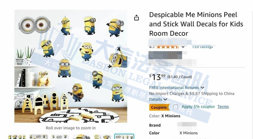 此案为商标+版权维权,文字商标:MINIONS(小黄人)、FAST & FURIOUS(速度与激情)、JAWS(大白鲨)、E.T.THE EXTRA-TERRESTRIAL(E.T.外星人),图形商标:小黄人经典形象(黄色胶囊状、护目镜造型)、速度与激情系列LOGO、大白鲨电影海报鲨鱼形象、E.T.外星人轮廓, 版权作品:小黄人系列电影及衍生动画、速度与激情系列电影镜头、大白鲨电影片段、E.T.外星人经典场景,以下是涉案的具体信息,跨境卖家尽快对照下架,避免造成TRO侵权损失!