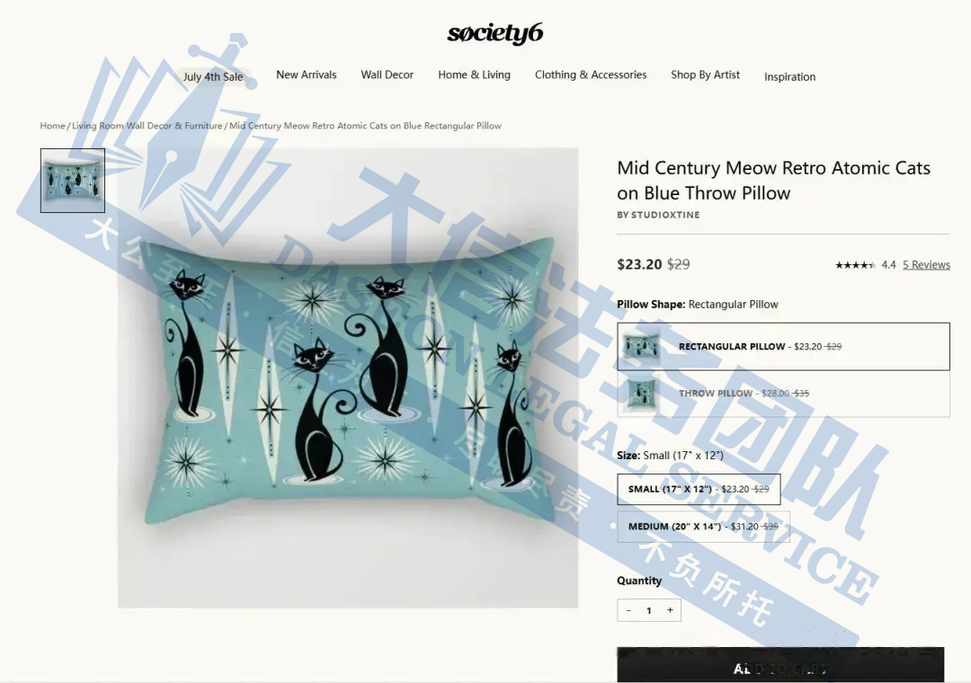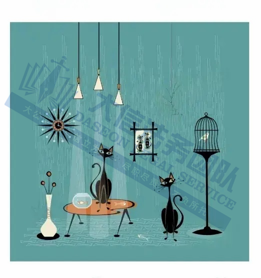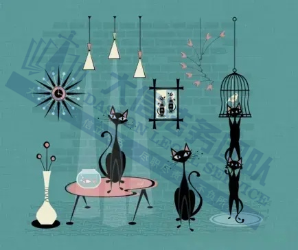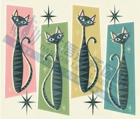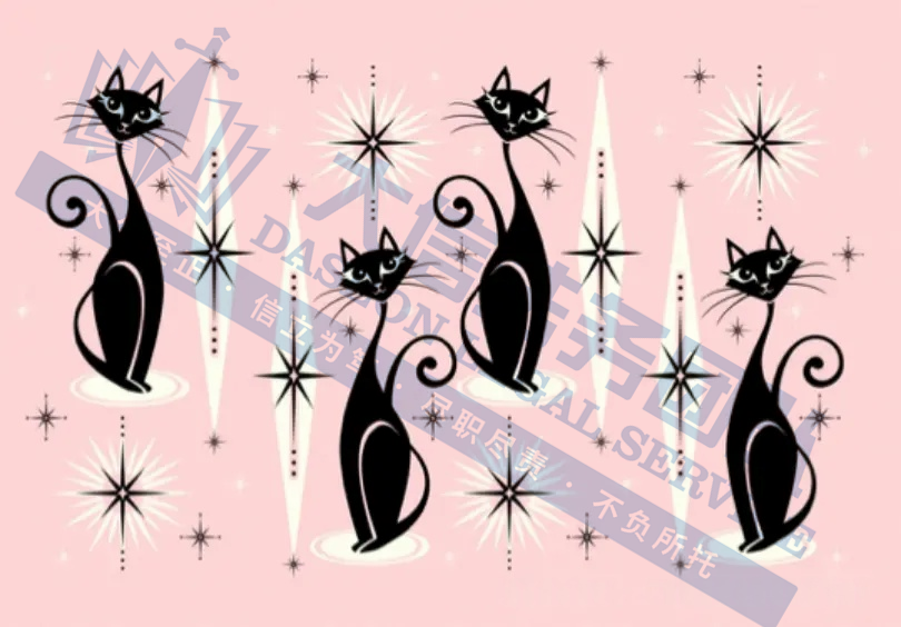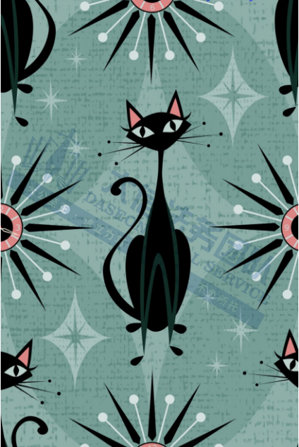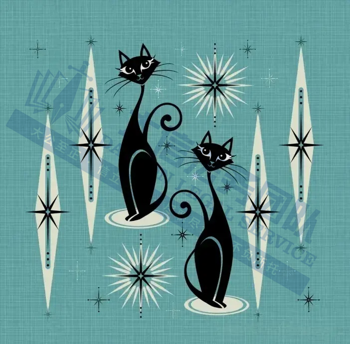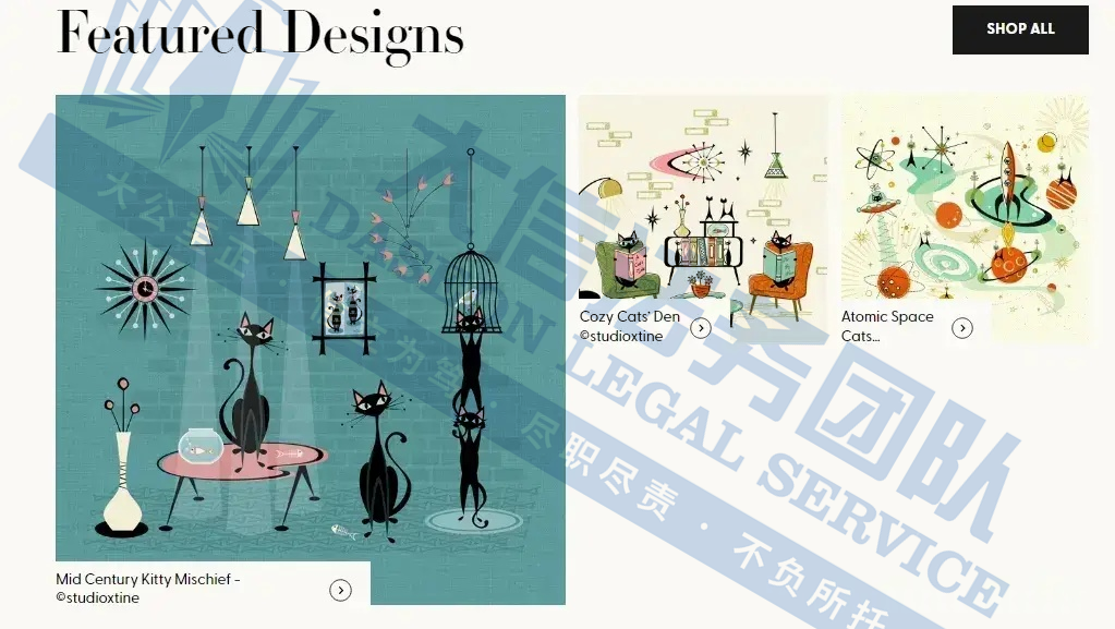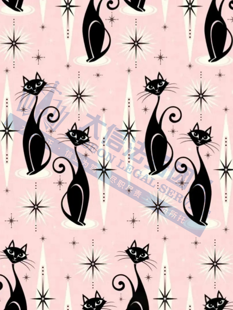 原告是一位知名的表面图案设计师和艺术家,作品以原创的手绘矢量插图为主,其版权图多以“猫”为主题,并融合了原子设计时代与中世纪现代美学,以萌宠猫咪和太空元素为核心,将猫猫、原子、几何、装饰艺术等元素组合在一起,展现出符合现代气息的复古色彩,其作品被广泛应用各种产品设计中,如手机壳、笔记本、家居装饰画、服装印花、布艺面料、文具贴纸。