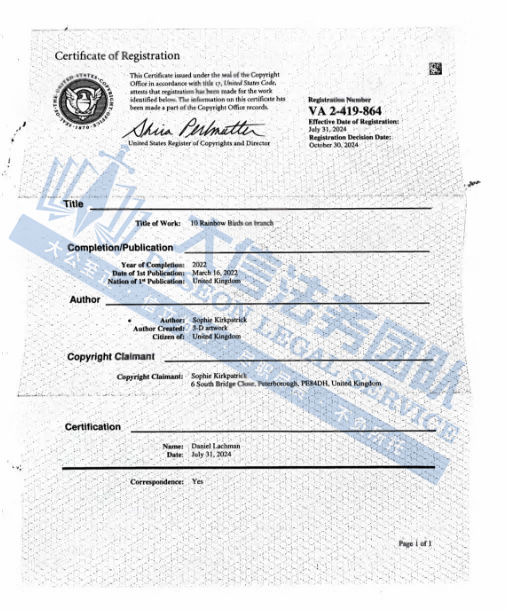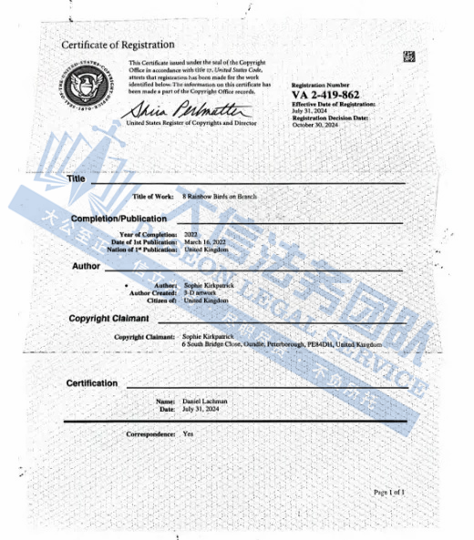 此案为版权维权,涉及原告旗下7张版权图,以下是涉及部分版权信息,除此之外,官网的其他作品,未经授权,均不可擅自使用,侵权风险极高,跨境卖家尽快检索下架,避免造成TRO侵权损失!